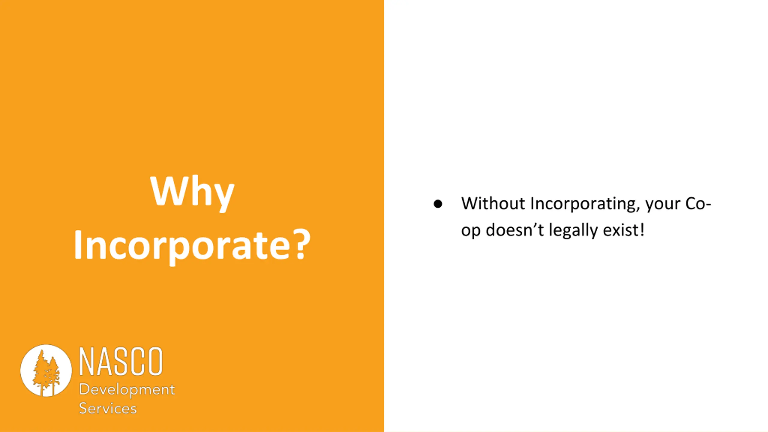 Why Without Incorporating, your Co- op doesn t legally exist! Incorporate?