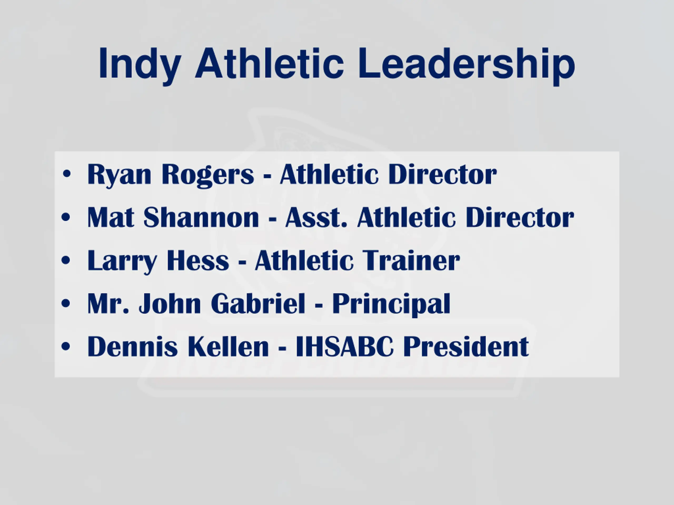Indy Athletic Leadership Ryan Rogers - Athletic Director Mat Shannon - Asst. Athletic Director Larry Hess - Athletic Trainer Mr. John Gabriel - Principal Dennis Kellen - IHSABC President