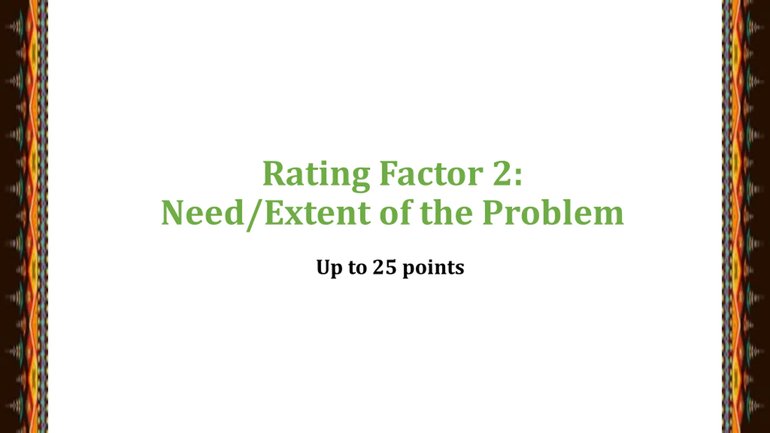 Rating Factor 2: Need/Extent of the Problem Up to 25 points 2