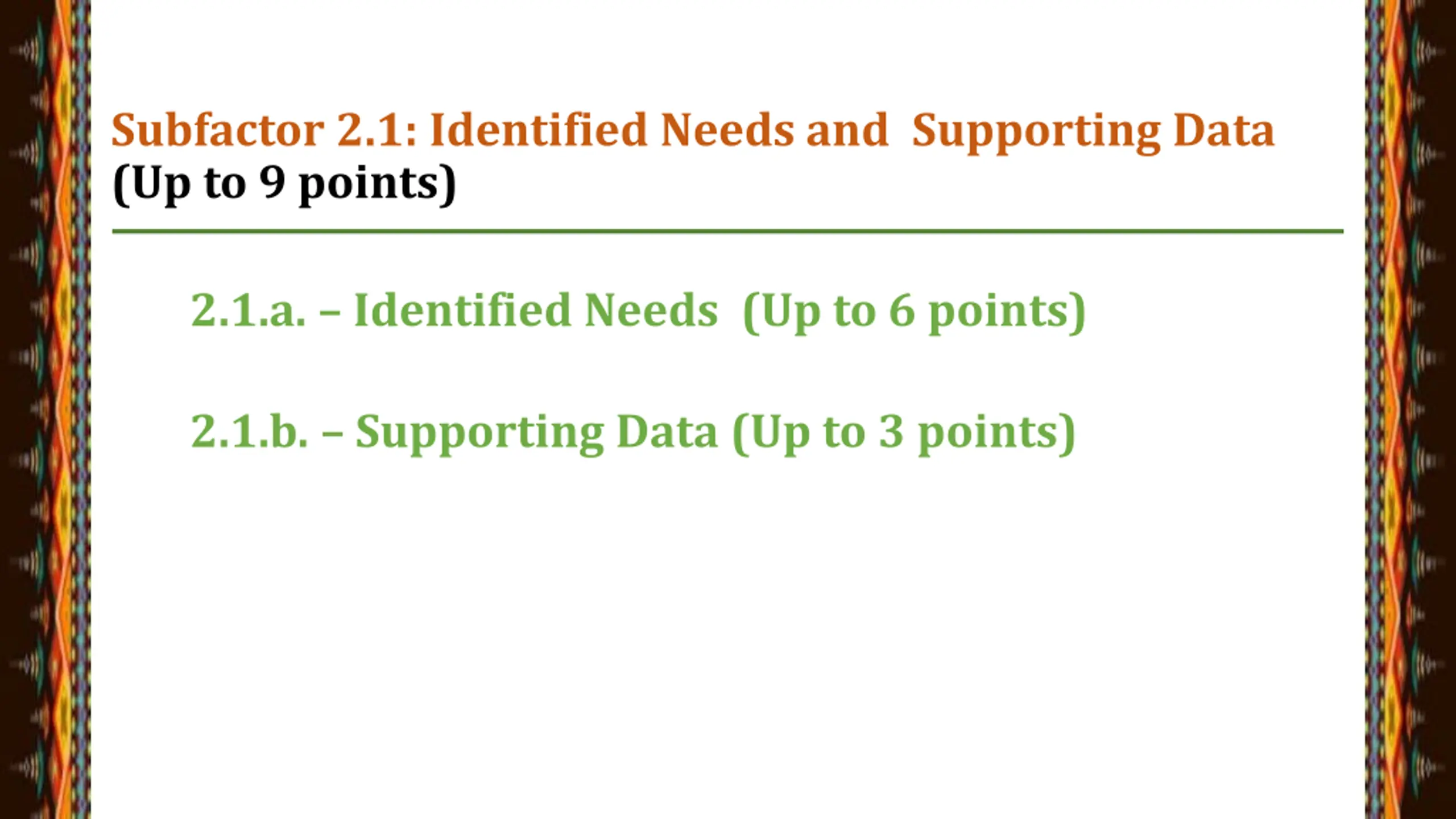 Subfactor 2.1: Identified Needs and Supporting Data (Up to 9 points) 2.1.a. Identified Needs (Up to 6 points) 2.1.b. Supporting Data (Up to 3 points) 4