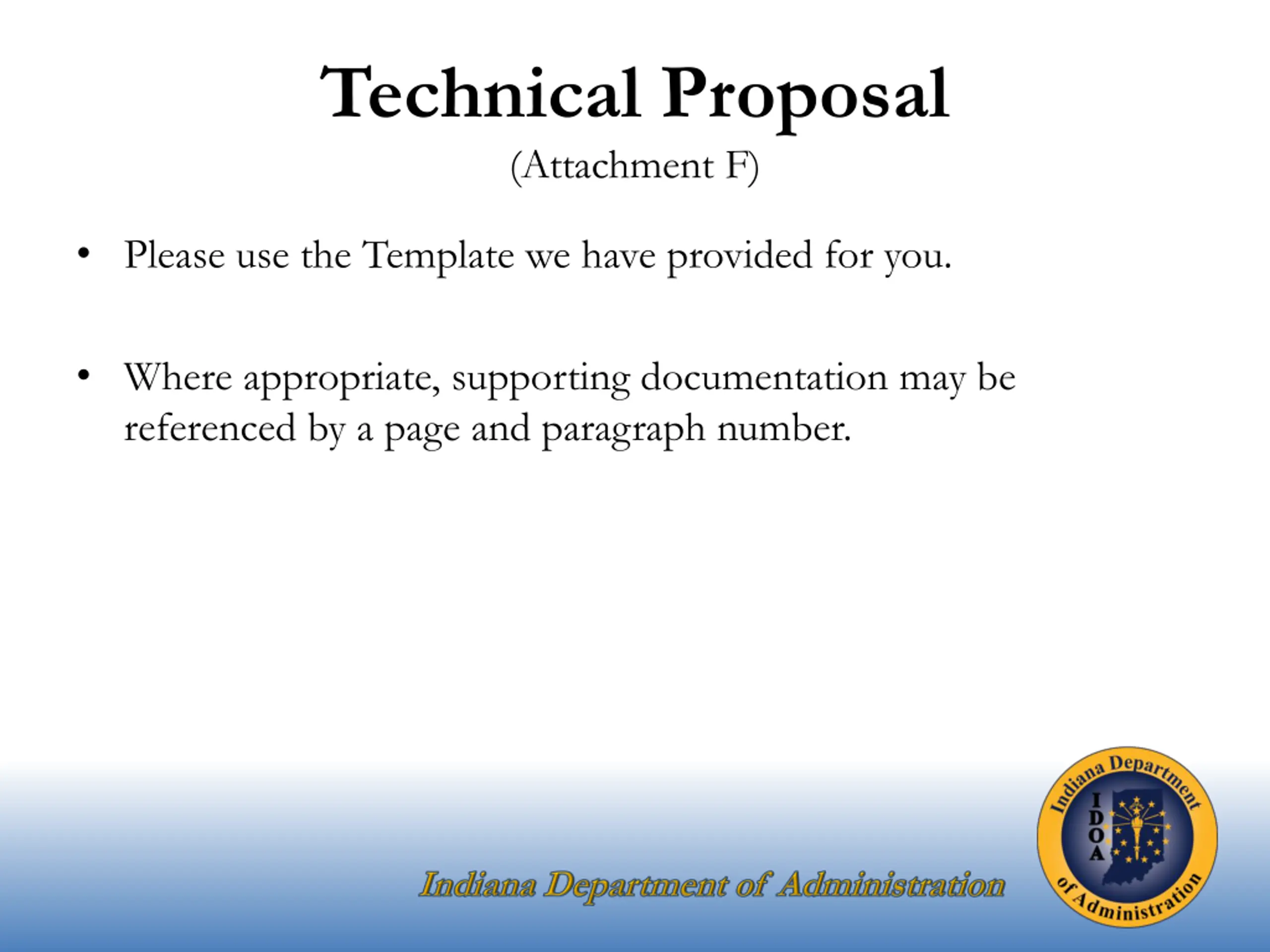 Technical Proposal (Attachment F) Please use the Template we have provided for you. Where appropriate, supporting documentation may be referenced by a page and paragraph number.