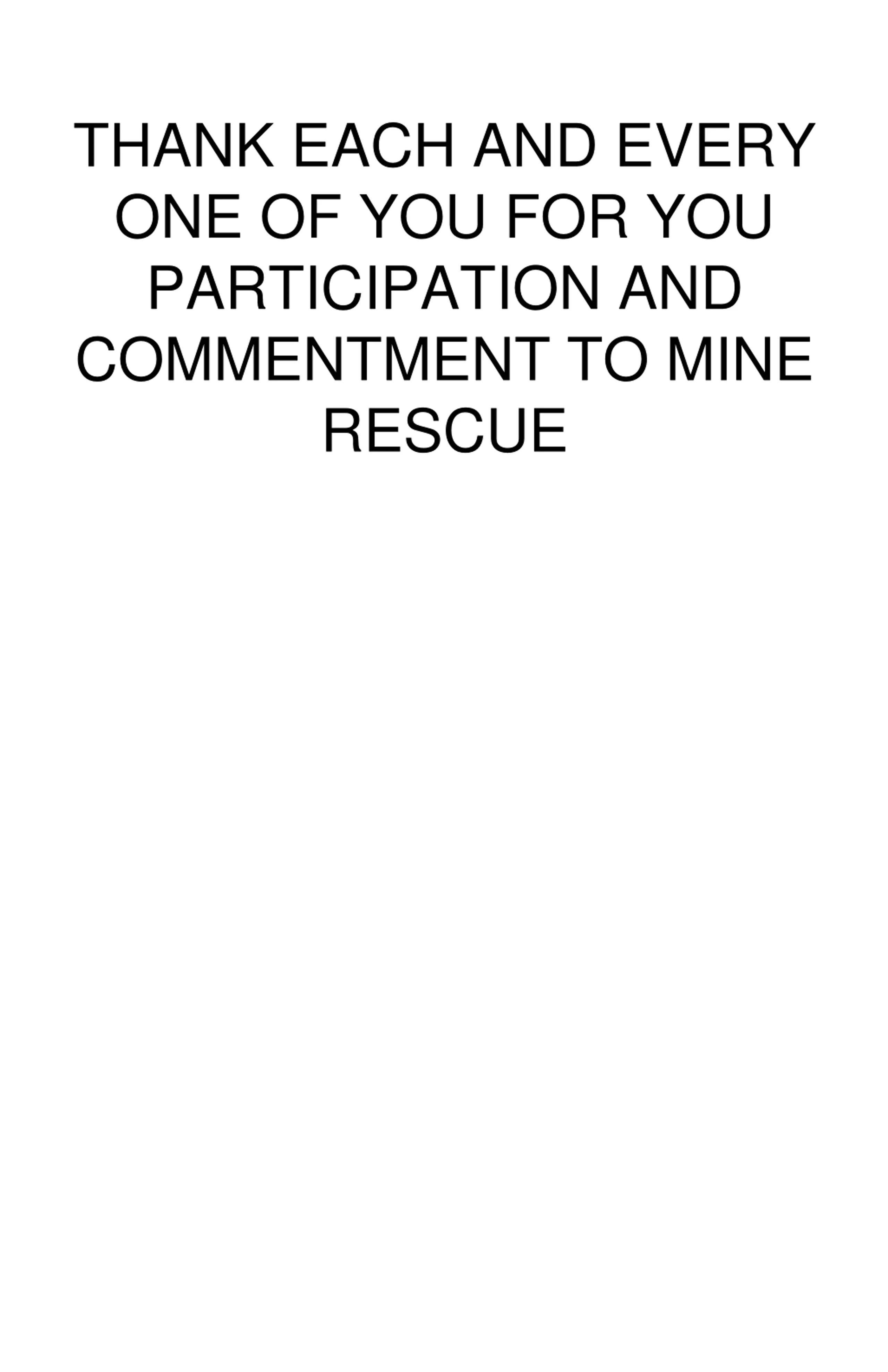 THANK EACH AND EVERY ONE OF YOU FOR YOU PARTICIPATION AND COMMENTMENT TO MINE RESCUE