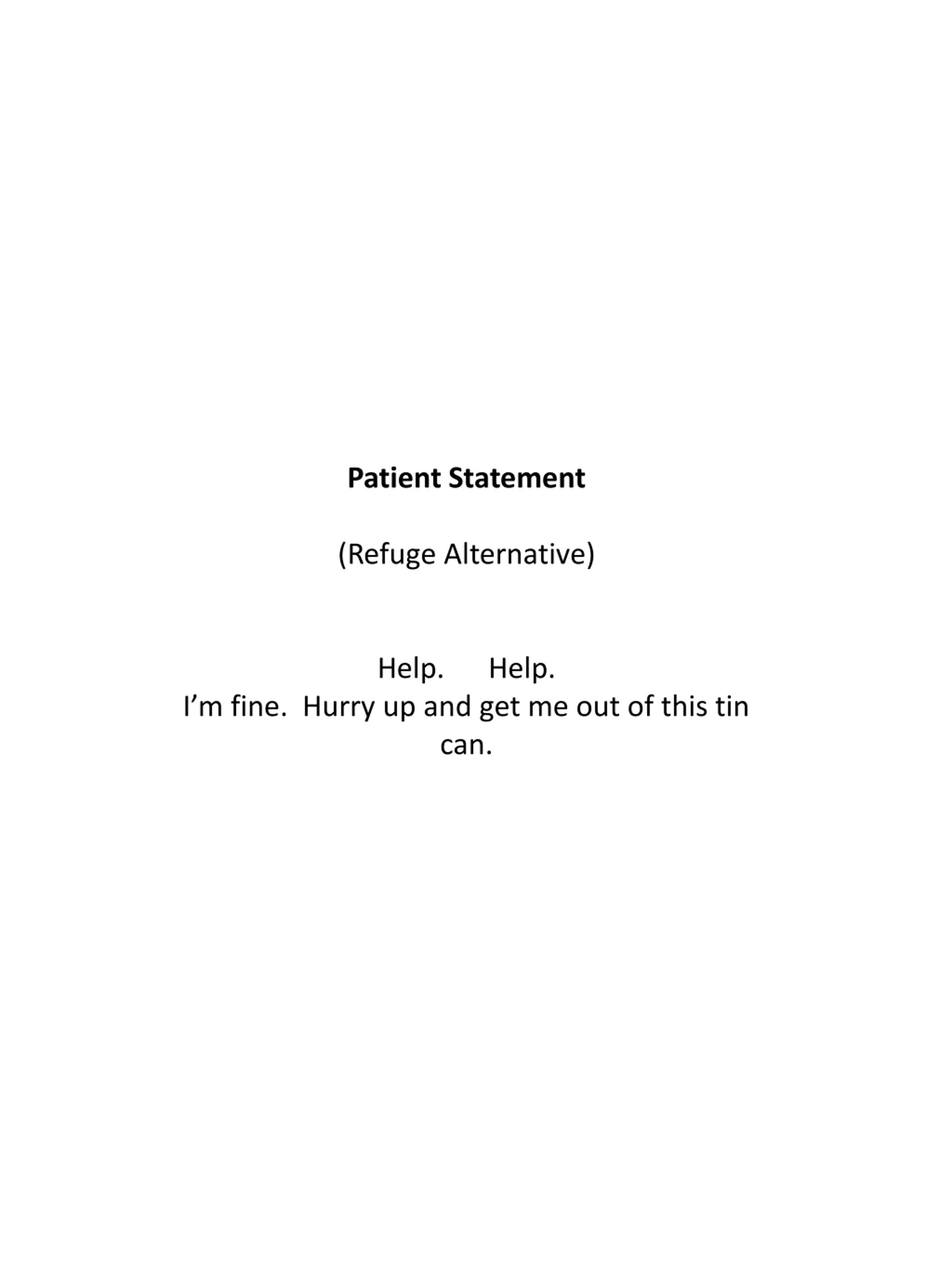 Patient Statement (Refuge Alternative) Help. Help. I m fine. Hurry up and get me out of this tin can.
