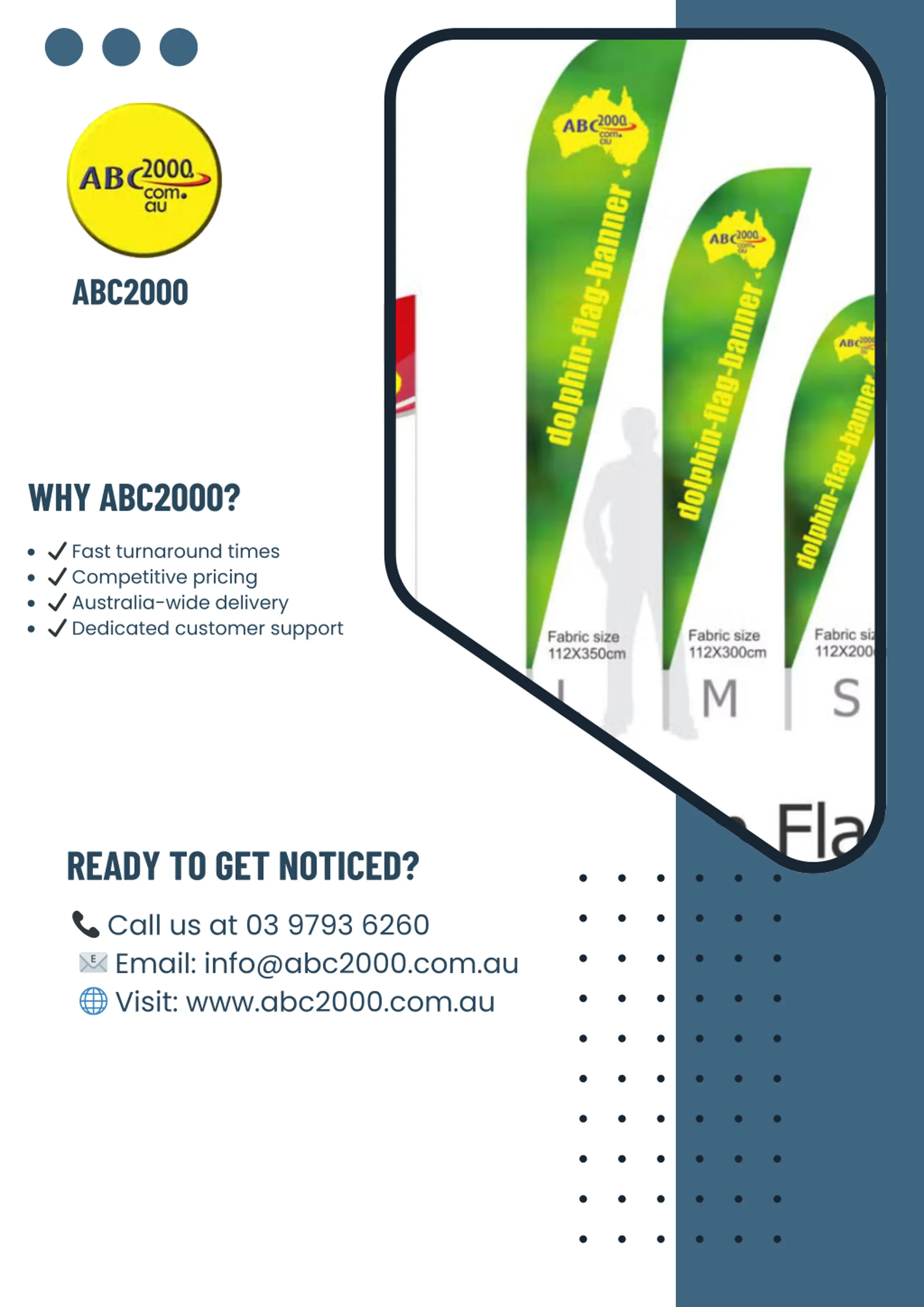 ABC2000 WHY ABC2000? Fast turnaround times Competitive pricing Australia-wide delivery Dedicated customer support READY TO GET NOTICED? ? Call us at 03 9793 6260 ? Email: info@abc2000.com.au ? Visit: www.abc2000.com.au