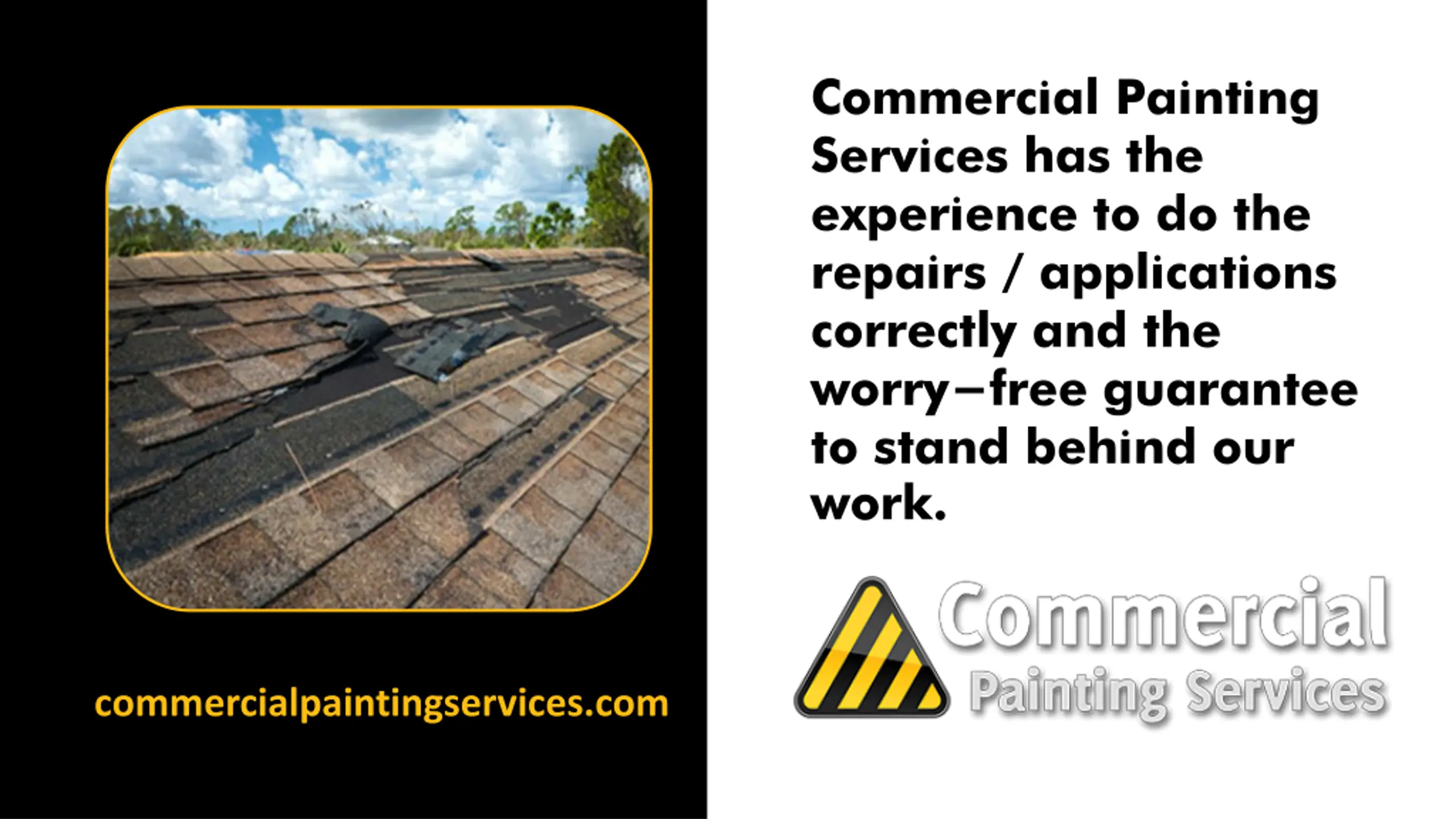 Commercial Painting Services has the experience to do the repairs / applications correctly and the worry-free guarantee to stand behind our work. commercialpaintingservices.com