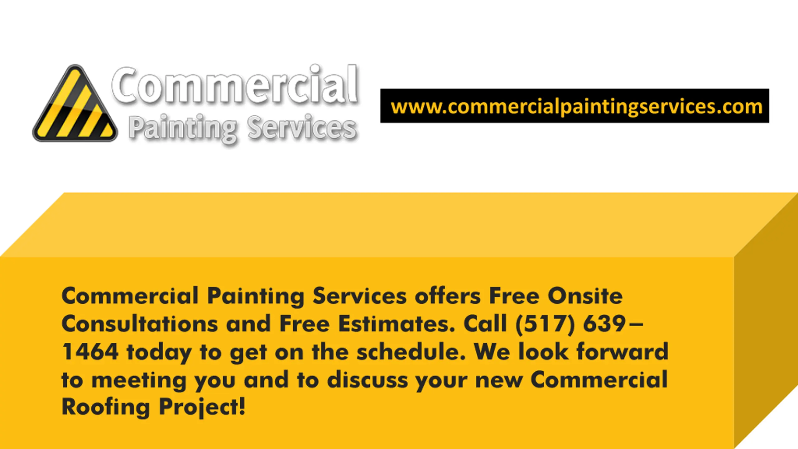 www.commercialpaintingservices.com Commercial Painting Services offers Free Onsite Consultations and Free Estimates. Call (517) 639- 1464 today to get on the schedule. We look forward to meeting you and to discuss your new Commercial Roofing Project!