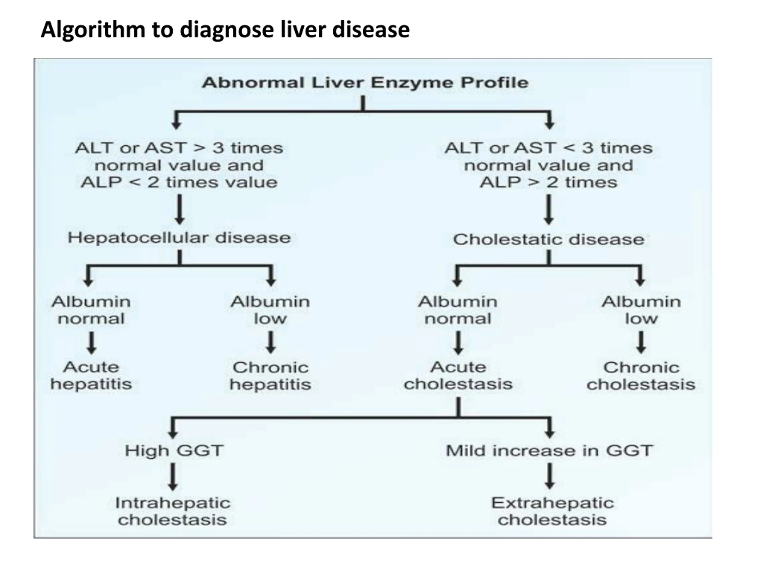 AIM: To diagnose and monitor liver disease. PROCEDURES: The blood sample is collected in a plain sample container, it is then allowed to clot before being separated. The serum is then inserted into Cobas C111 chemistry analyser and the test is ordered.