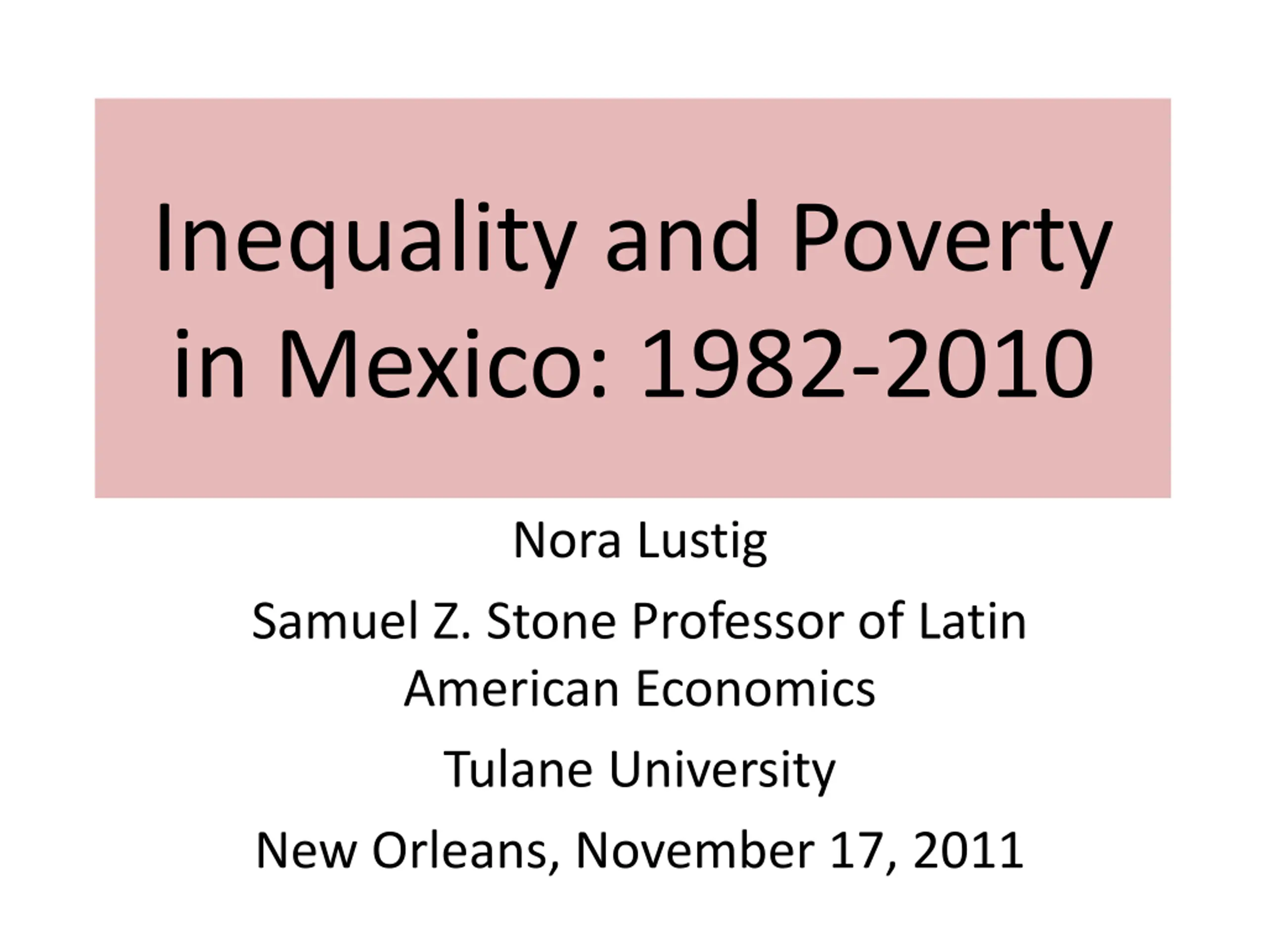 Inequality and Poverty in Mexico: 1982-2010 Nora Lustig Samuel Z. Stone Professor of Latin American Economics Tulane University New Orleans, November 17, 2011
