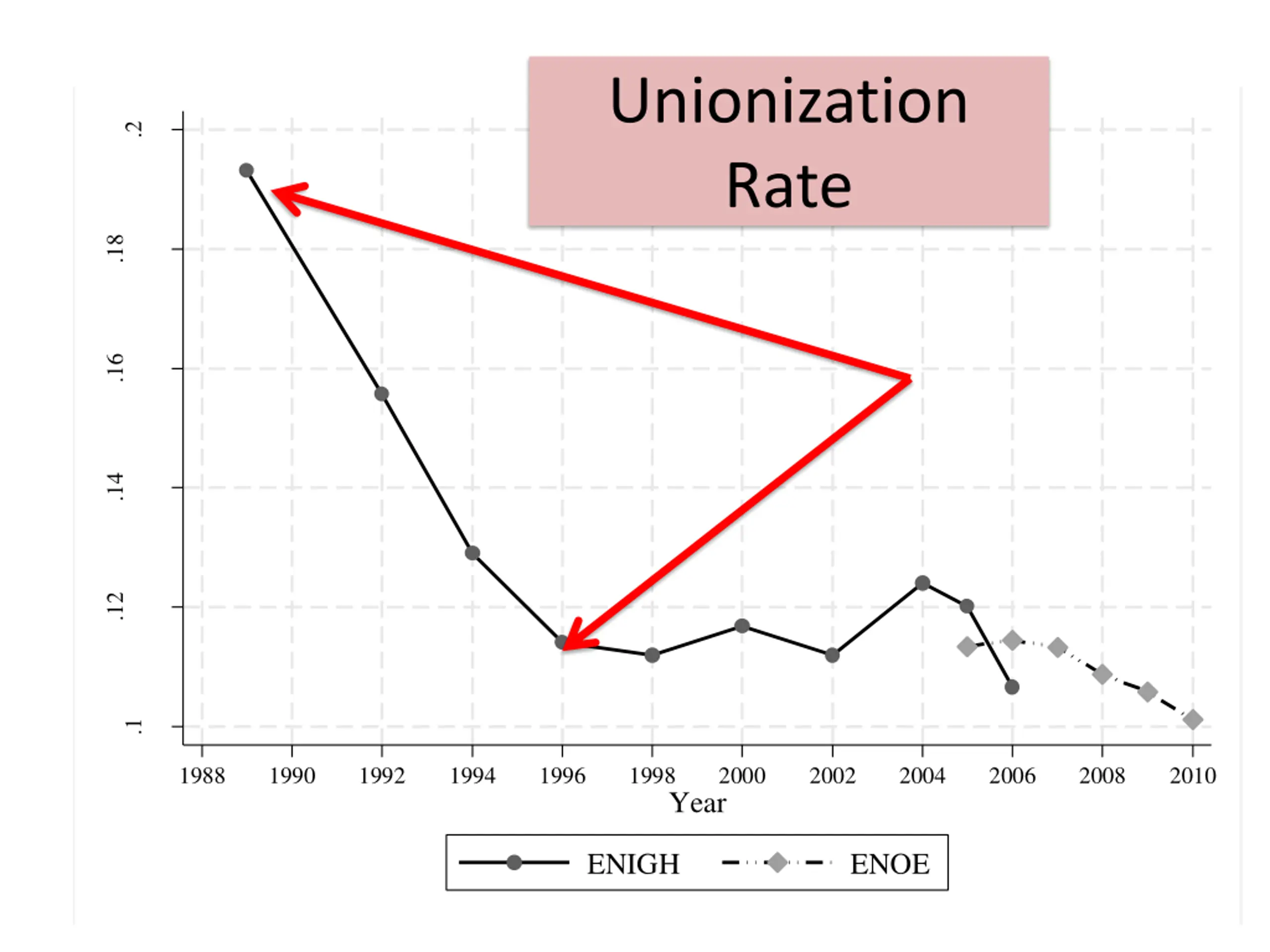Unionization Rate .2 .18 Unionization Rate .16 .14 .12 .1 1988 1990 1992 1994 1996 1998 2000 2002 2004 2006 2008 2010 Year ENIGH ENOE