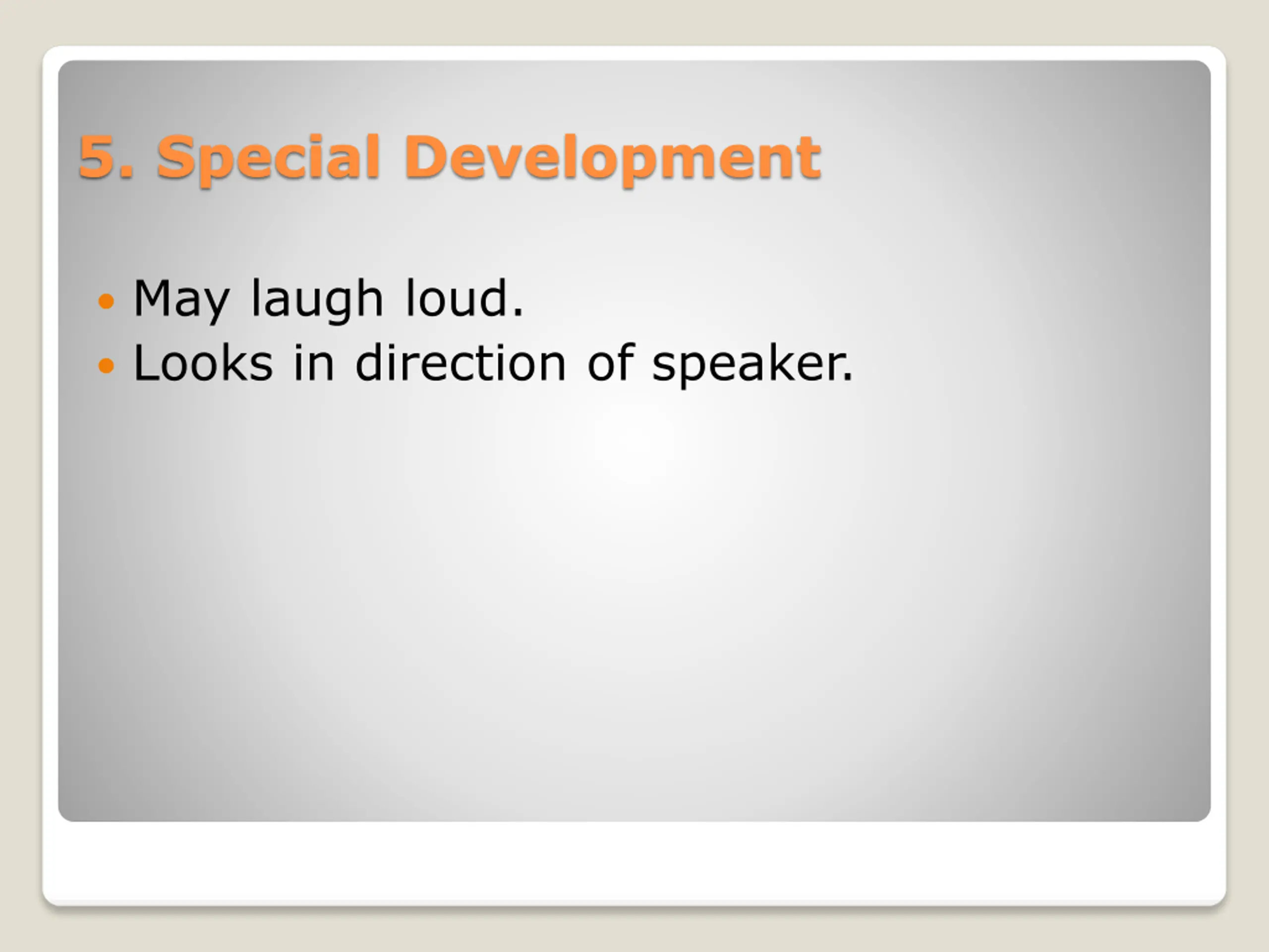 5. Special Development May laugh loud. Looks in direction of speaker.