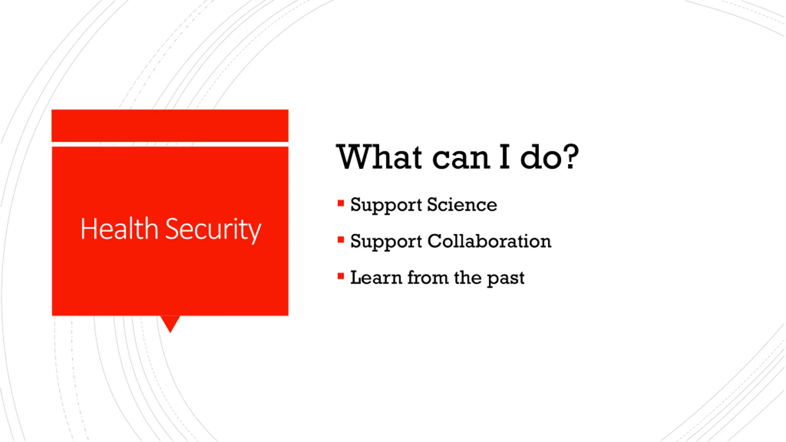 What can I do? Support Science Health Security Support Collaboration Learn from the past