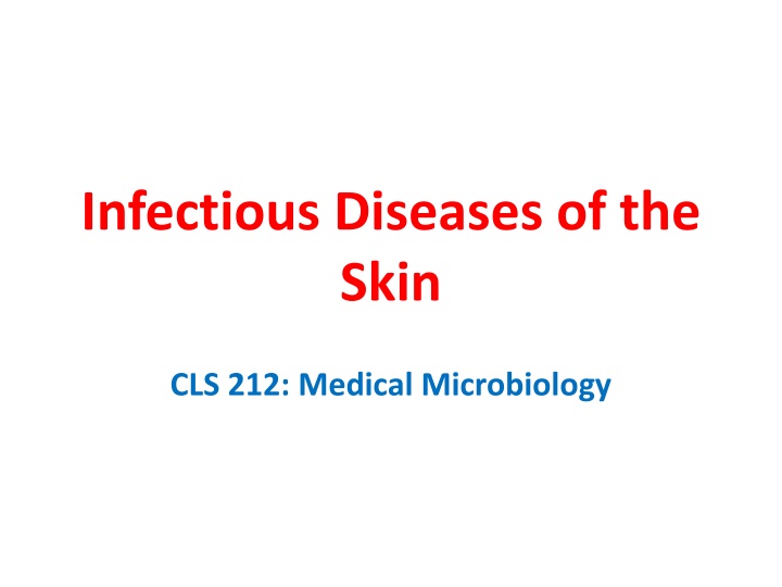 Infectious Diseases of the Skin CLS 212: Medical Microbiology