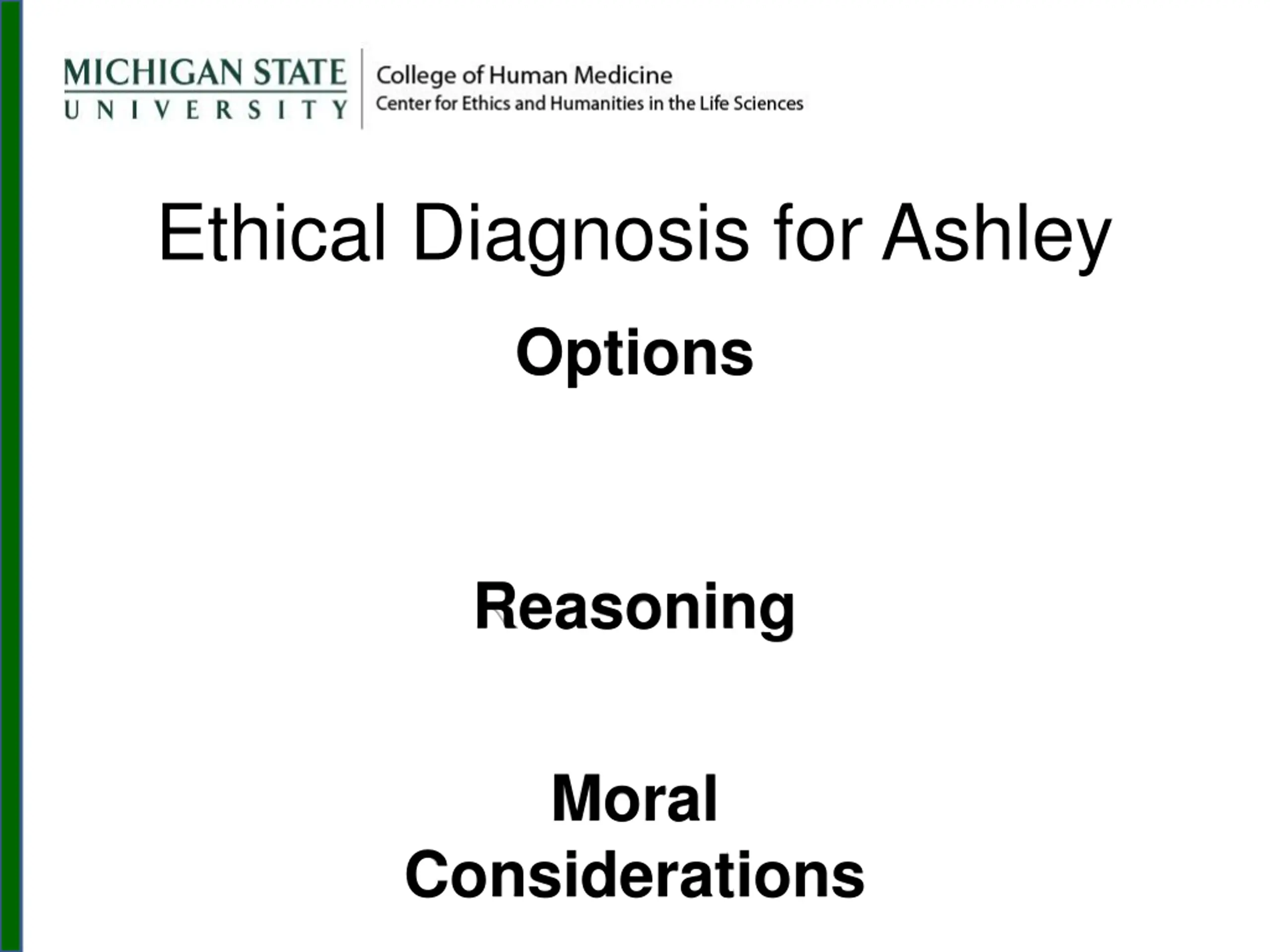 Ethical Diagnosis for Ashley Options Reasoning Moral Considerations