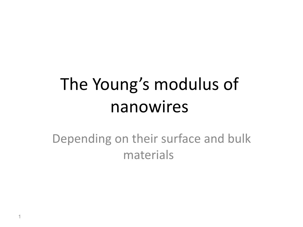 Explore how the Young's modulus of nanowires is predicted based on surface and bulk materials properties, considering the impact of geometric size on mechanical properties. Discover the importance of surface stress in determining the elastic properties of nanomaterials in devices like NEMS.