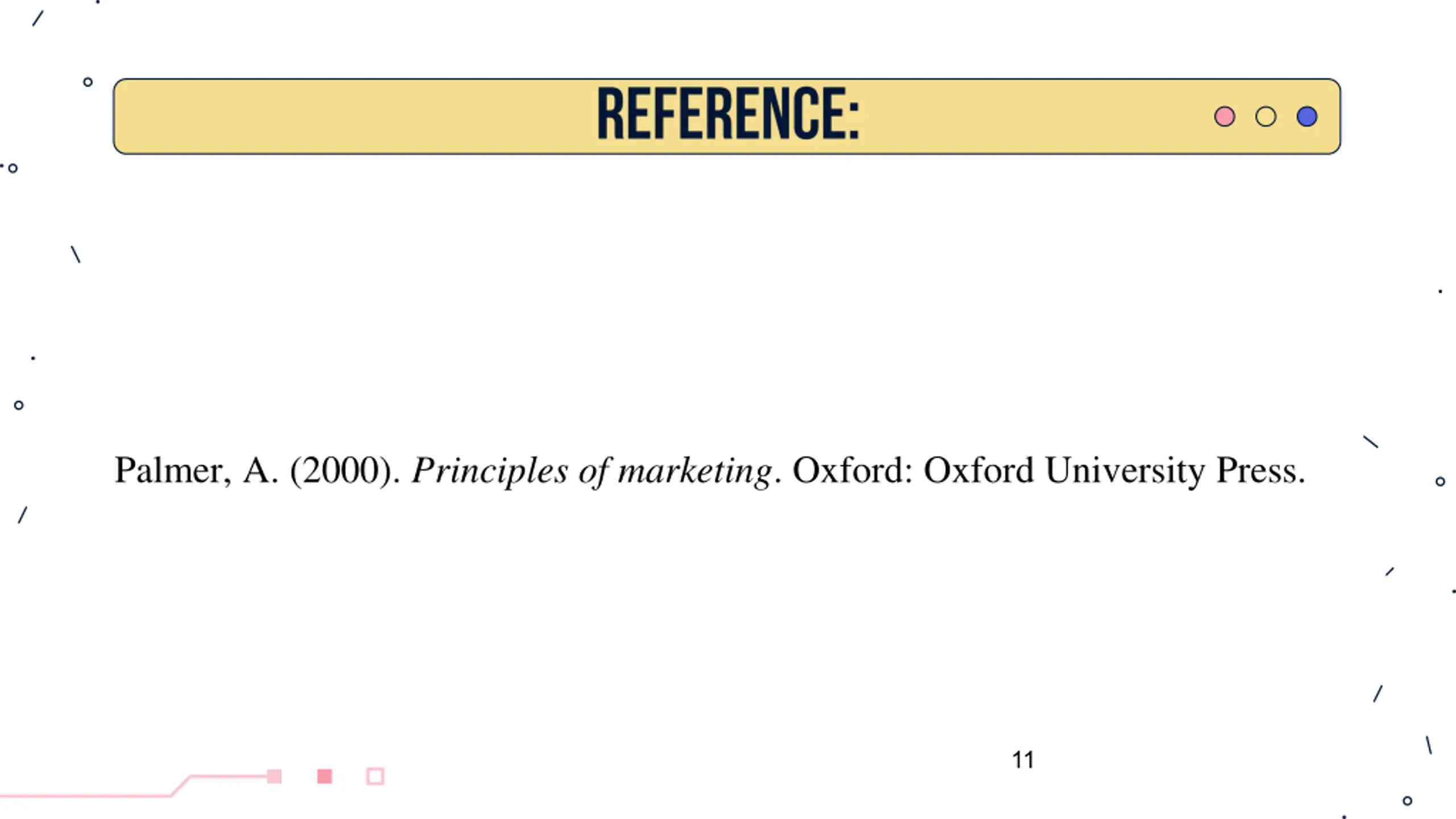 Palmer, A. (2000). Principles of marketing. Oxford: Oxford University Press. 11