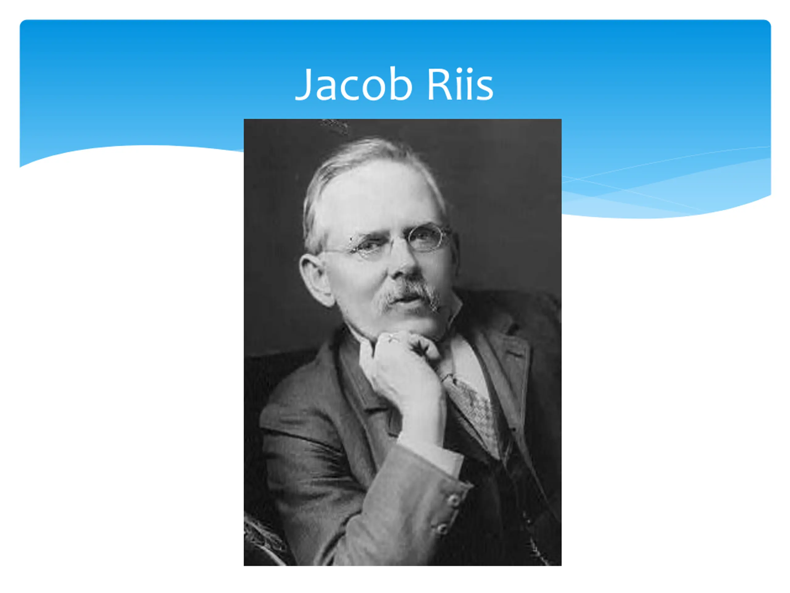 Jacob Riis Jacob Riis was born on May 3, 1849 and died May 26, 1914. Jacob Riis was a police reporter whose work appeared in the New York Newspapers that revealed the living and working conditions of the poor (virginia.edu) Riis fought for better housing, adequate lighting and sanitation, and the construction of city parks and playgrounds for the poor Riis believed the middle or upper class should donate or help the poor out He believed that poverty was the result of the environmental conditions