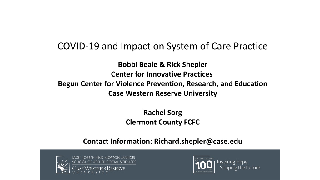 COVID-19 and Impact on System of Care Practice Bobbi Beale & Rick Shepler Center for Innovative Practices Begun Center for Violence Prevention, Research, and Education Case Western Reserve University Rachel Sorg Clermont County FCFC Contact Information: Richard.shepler@case.edu