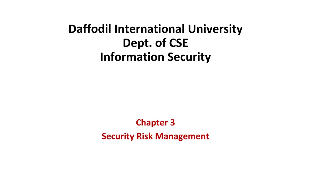Daffodil International University Dept. of CSE Information Security Chapter 3 Security Risk Management