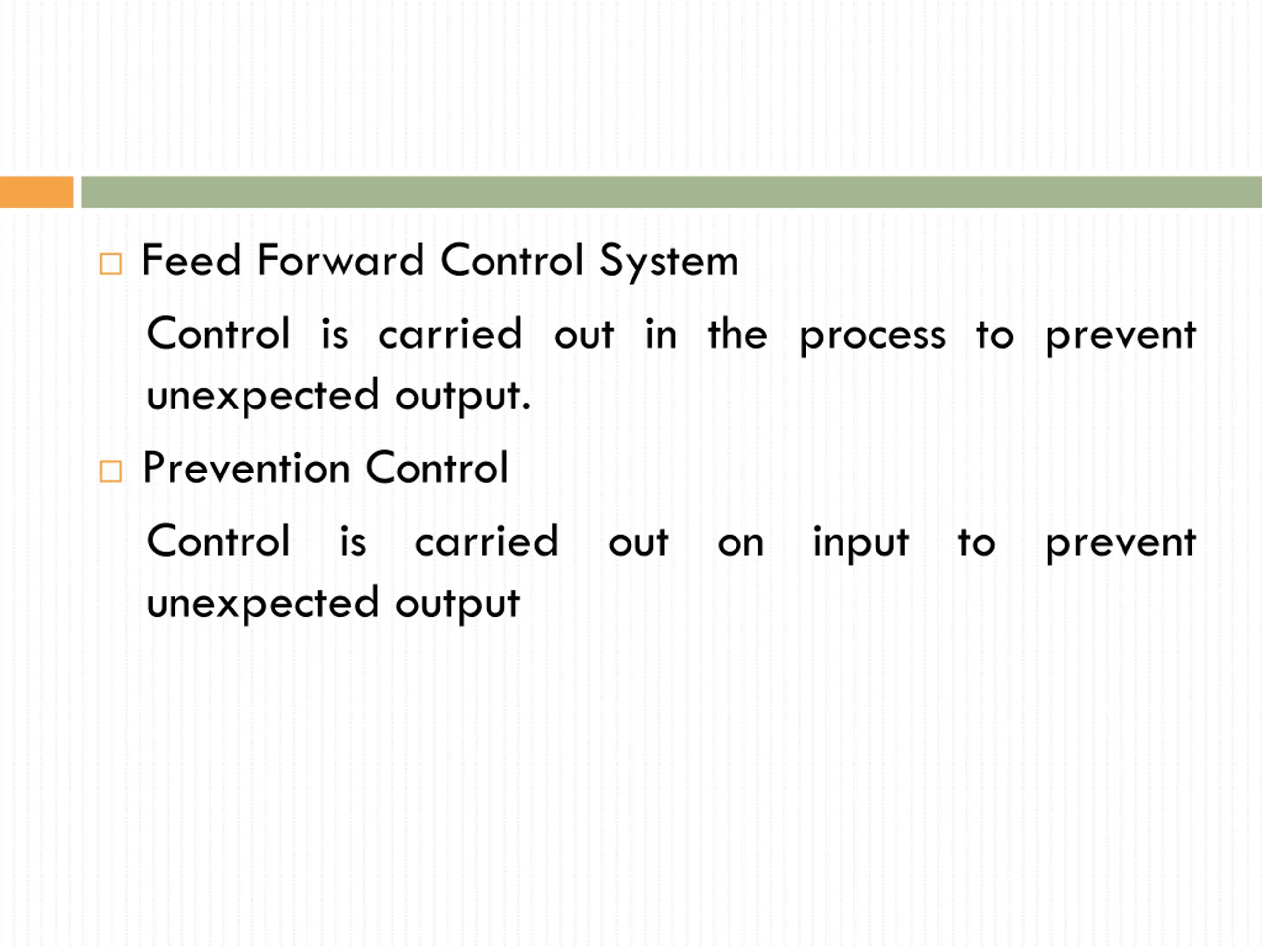 Feed Forward Control System Control is carried out in the process to prevent unexpected output. Prevention Control Control is carried out on input to prevent unexpected output