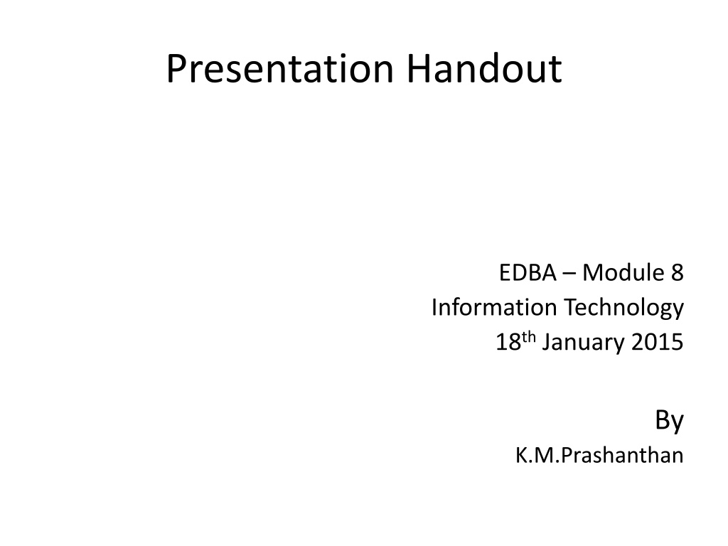 Presentation Handout EDBA Module 8 Information Technology 18thJanuary 2015 By K.M.Prashanthan