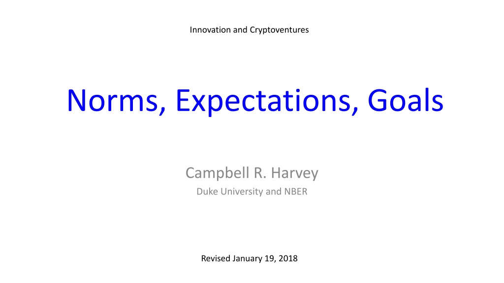 Innovation and Cryptoventures Norms, Expectations, Goals Campbell R. Harvey Duke University and NBER Revised January 19, 2018