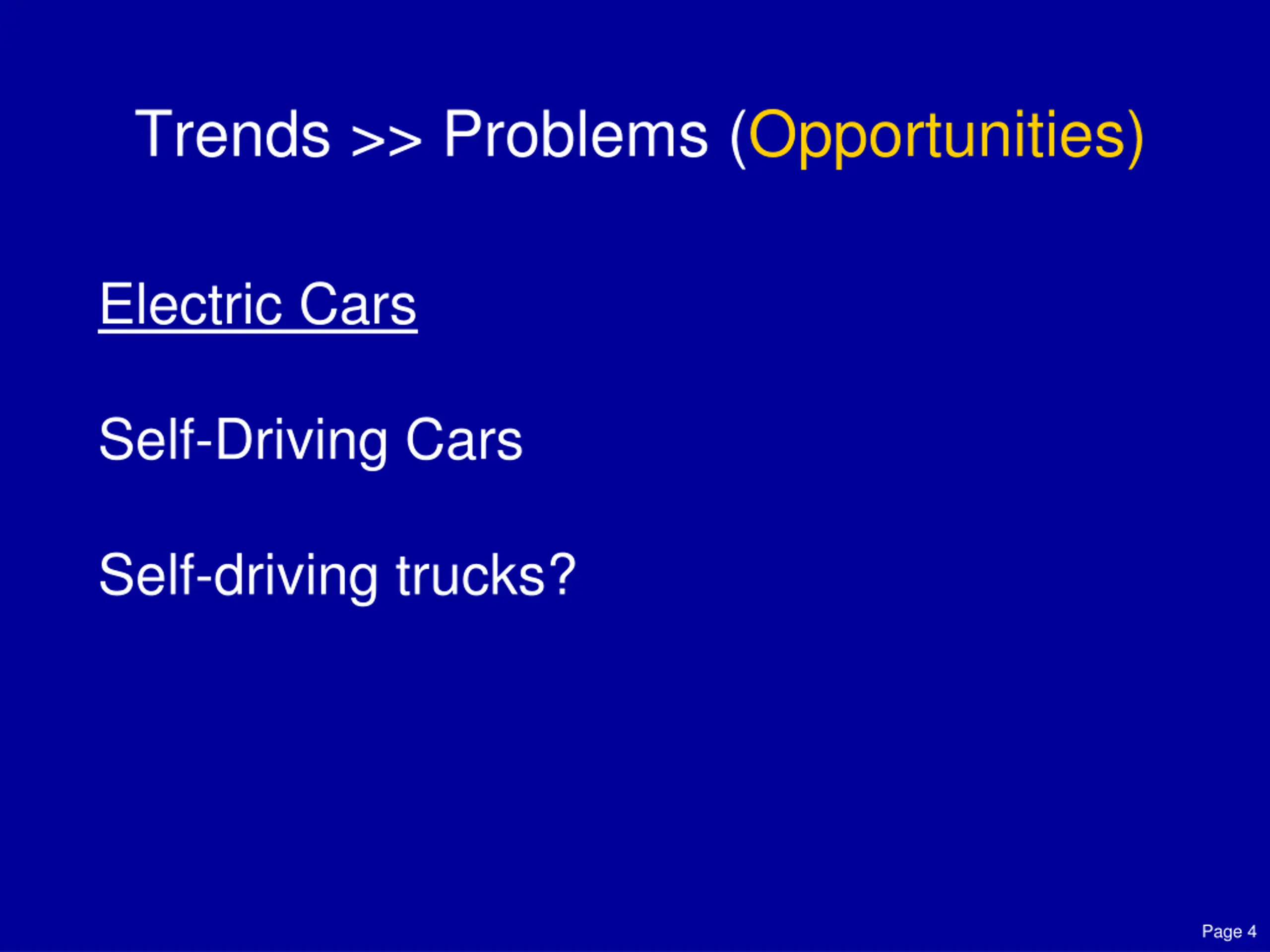 Trends >> Problems (Opportunities) Electric Cars Self-Driving Cars Self-driving trucks? Page 4
