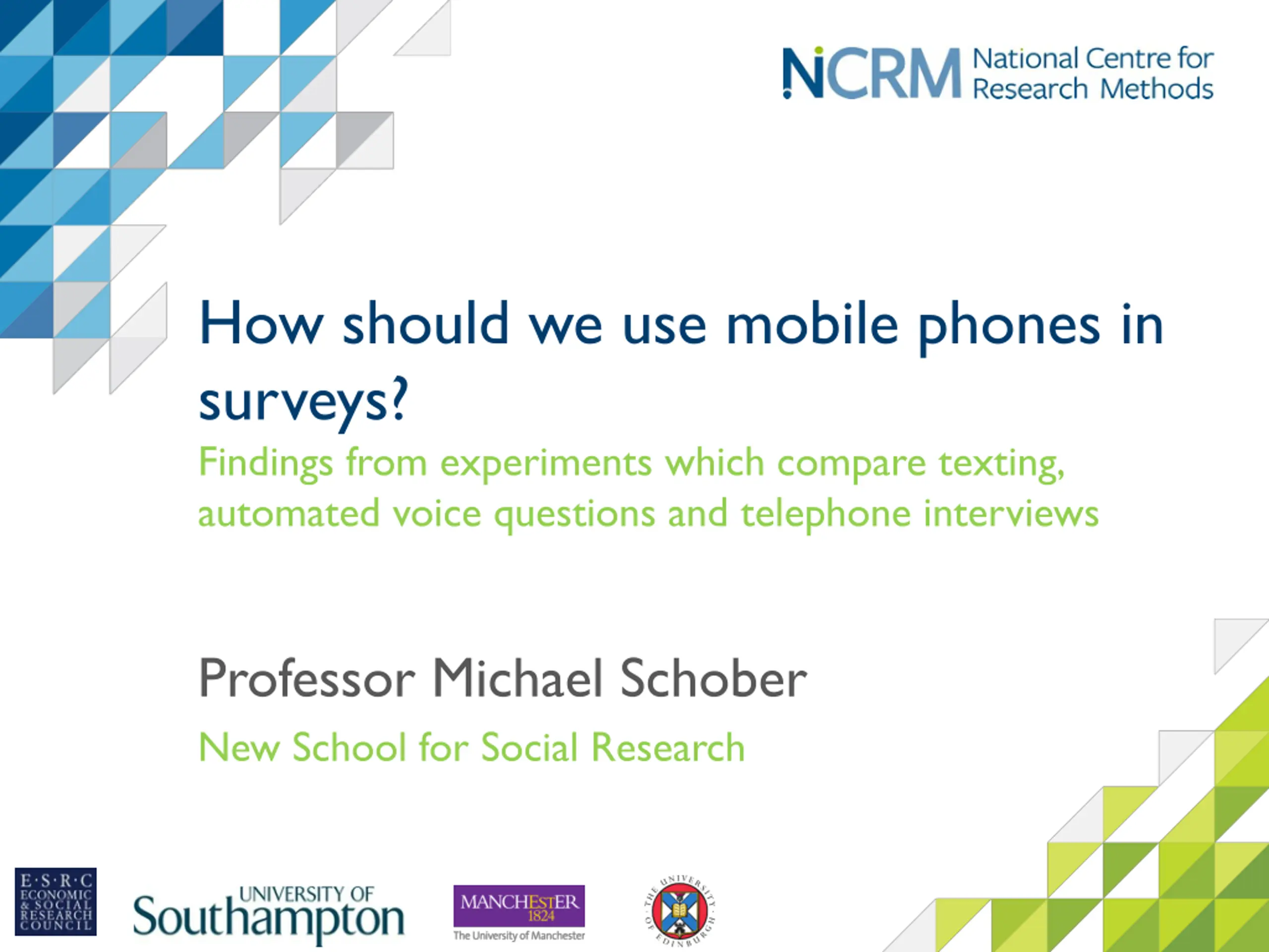 How should we use mobile phones in surveys? Findings from experiments which compare texting, automated voice questions and telephone interviews Professor Michael Schober New School for Social Research
