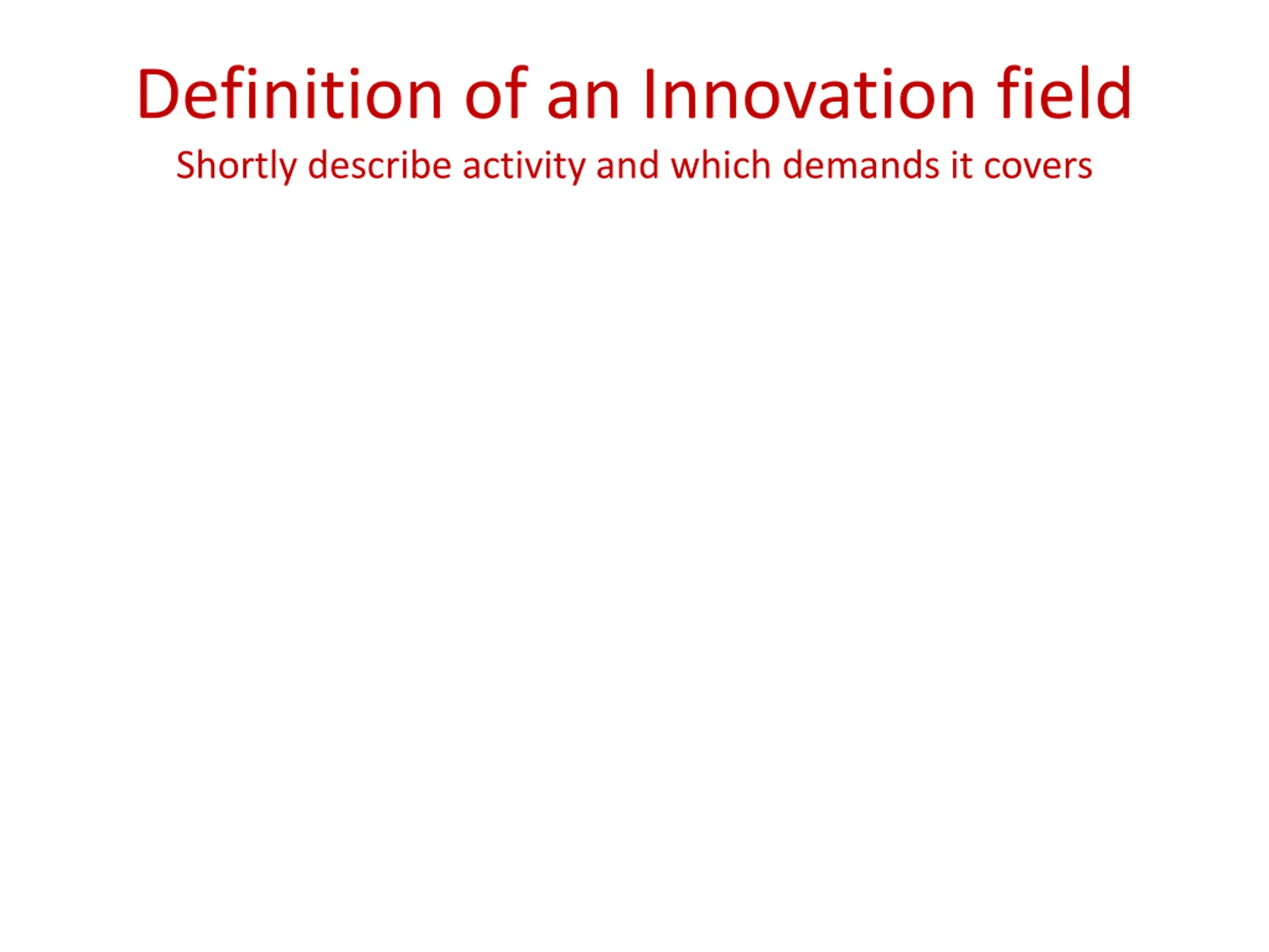 Definition of an Innovation field Shortly describe activity and which demands it covers