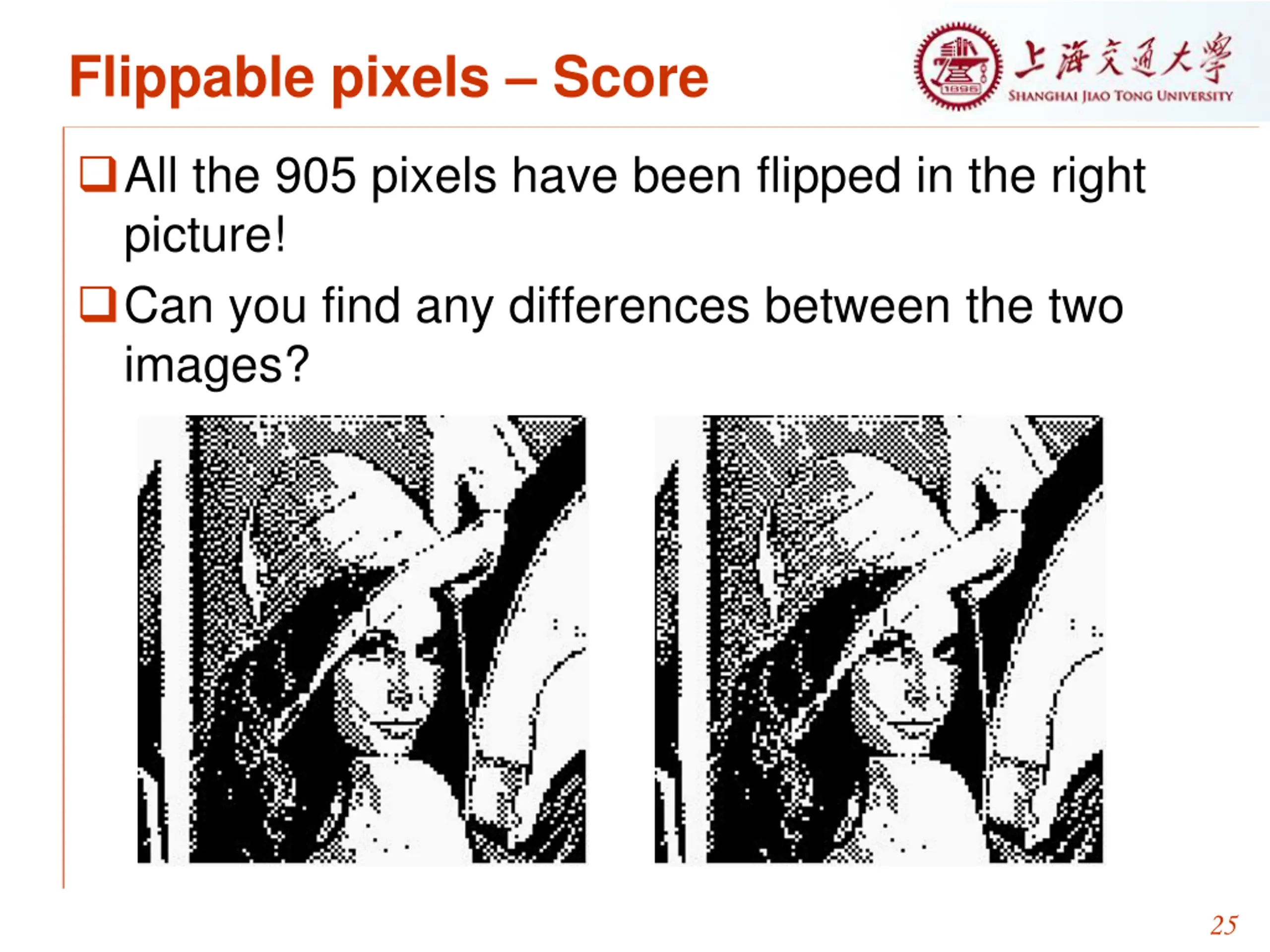 Flippable pixels Score All the 905 pixels have been flipped in the right picture! Can you find any differences between the two images? 25