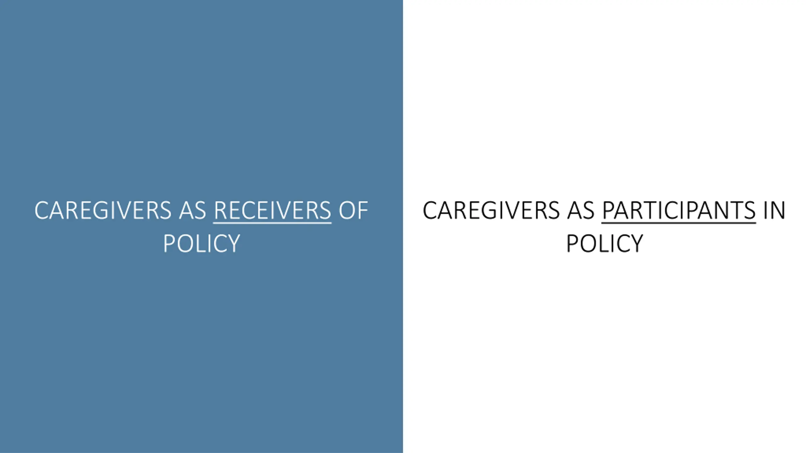 CAREGIVERS AS RECEIVERS OF POLICY CAREGIVERS AS PARTICIPANTS IN POLICY