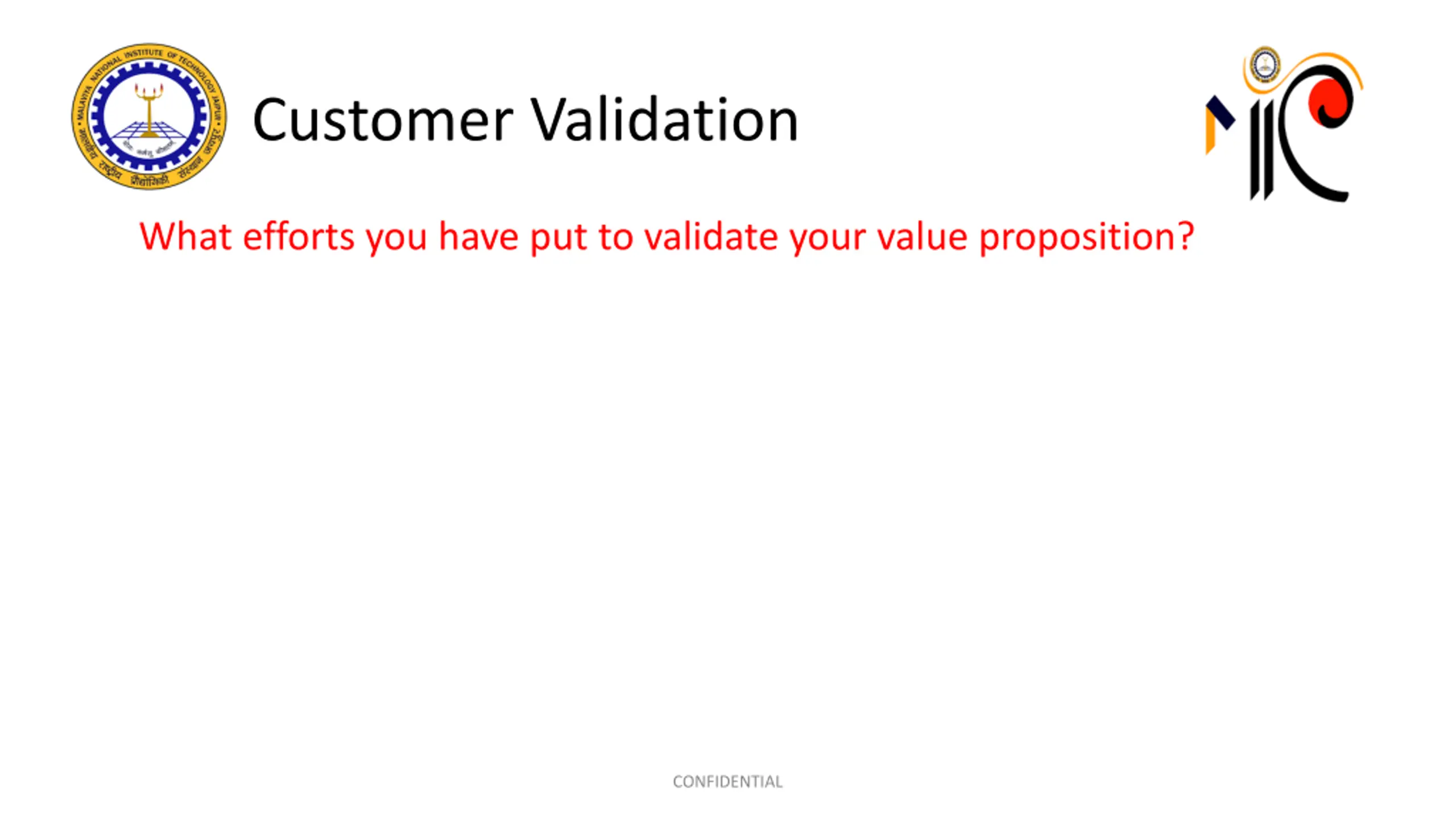 Customer Validation What efforts you have put to validate your value proposition? CONFIDENTIAL