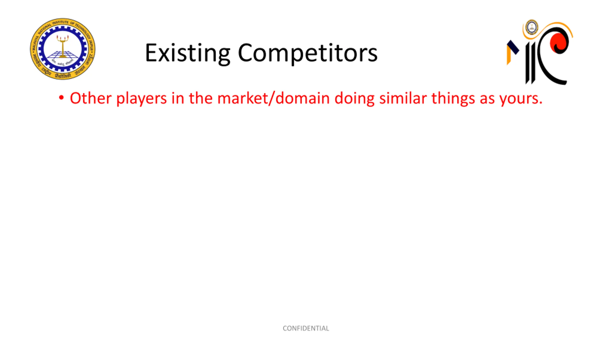 Existing Competitors Other players in the market/domain doing similar things as yours. CONFIDENTIAL