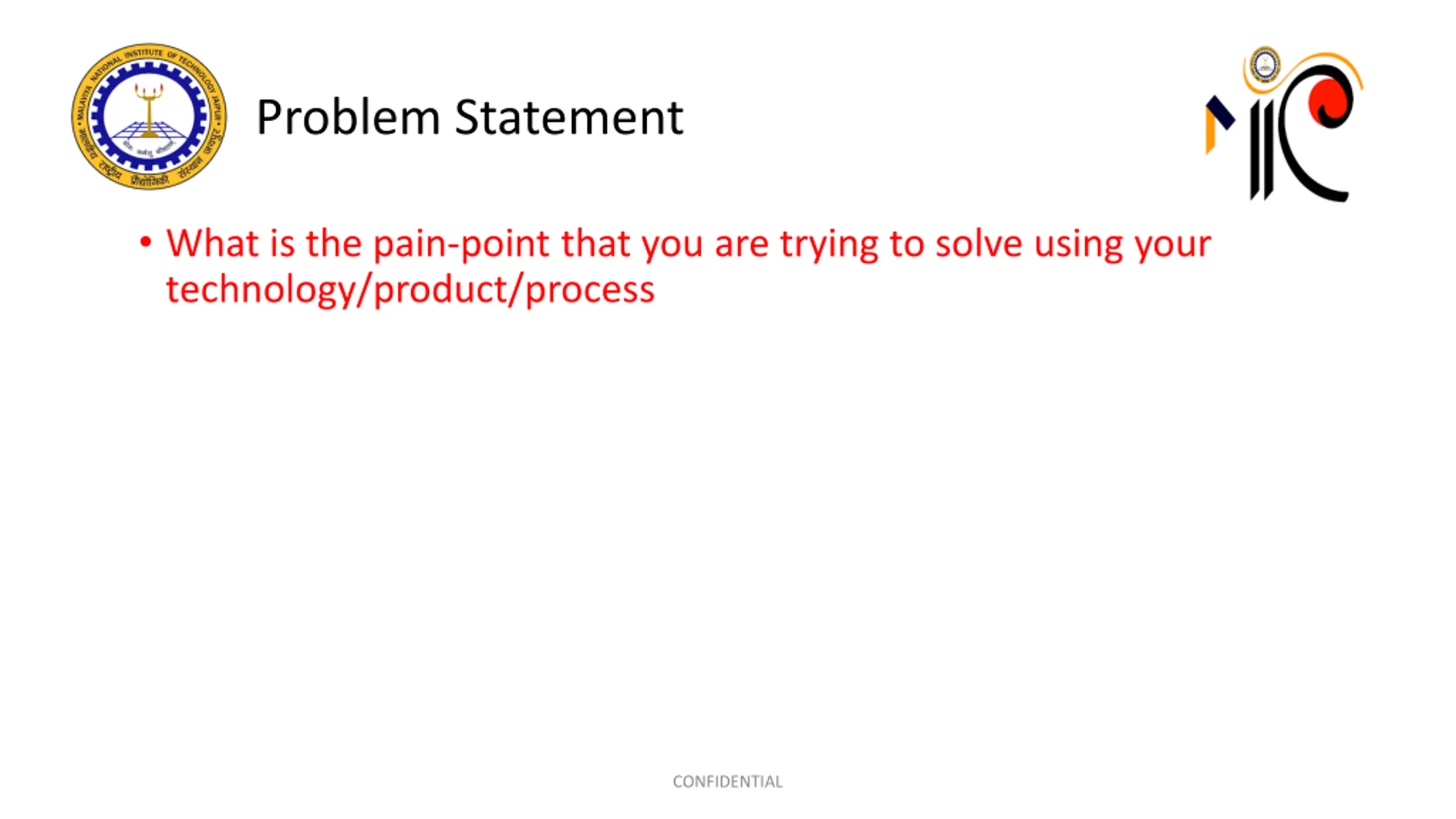 Problem Statement What is the pain-point that you are trying to solve using your technology/product/process CONFIDENTIAL