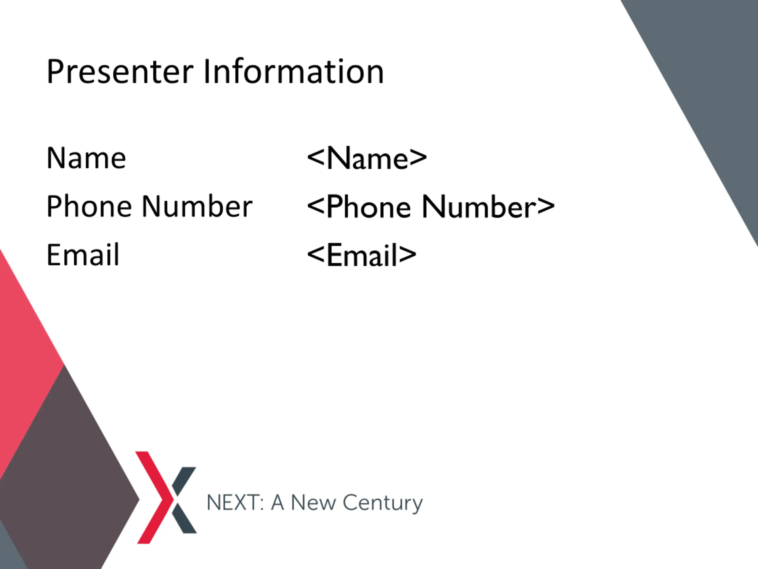 Presenter Information <Name> <Phone Number> <Email> Name Phone Number Email