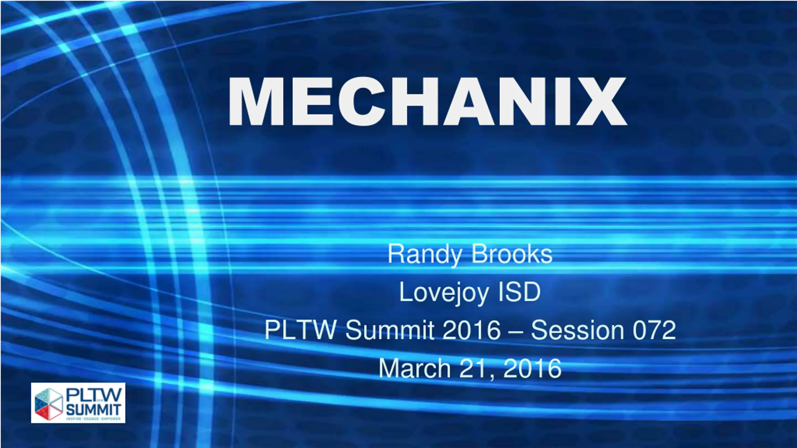 MECHANIX Randy Brooks Lovejoy ISD PLTW Summit 2016 Session 072 March 21, 2016