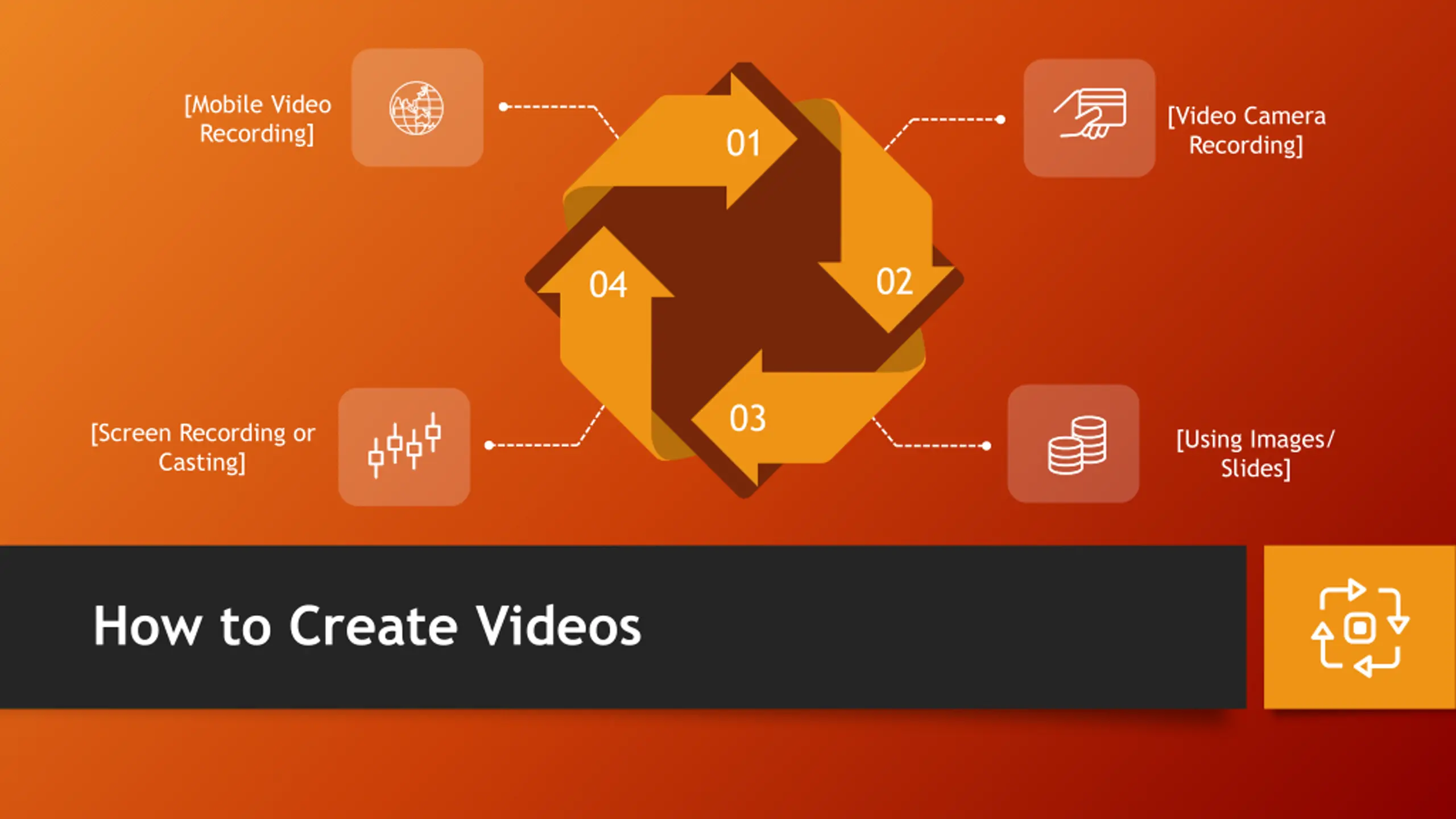 [Mobile Video Recording] [Video Camera Recording] 01 02 04 03 [Screen Recording or Casting] [Using Images/ Slides] How to Create Videos