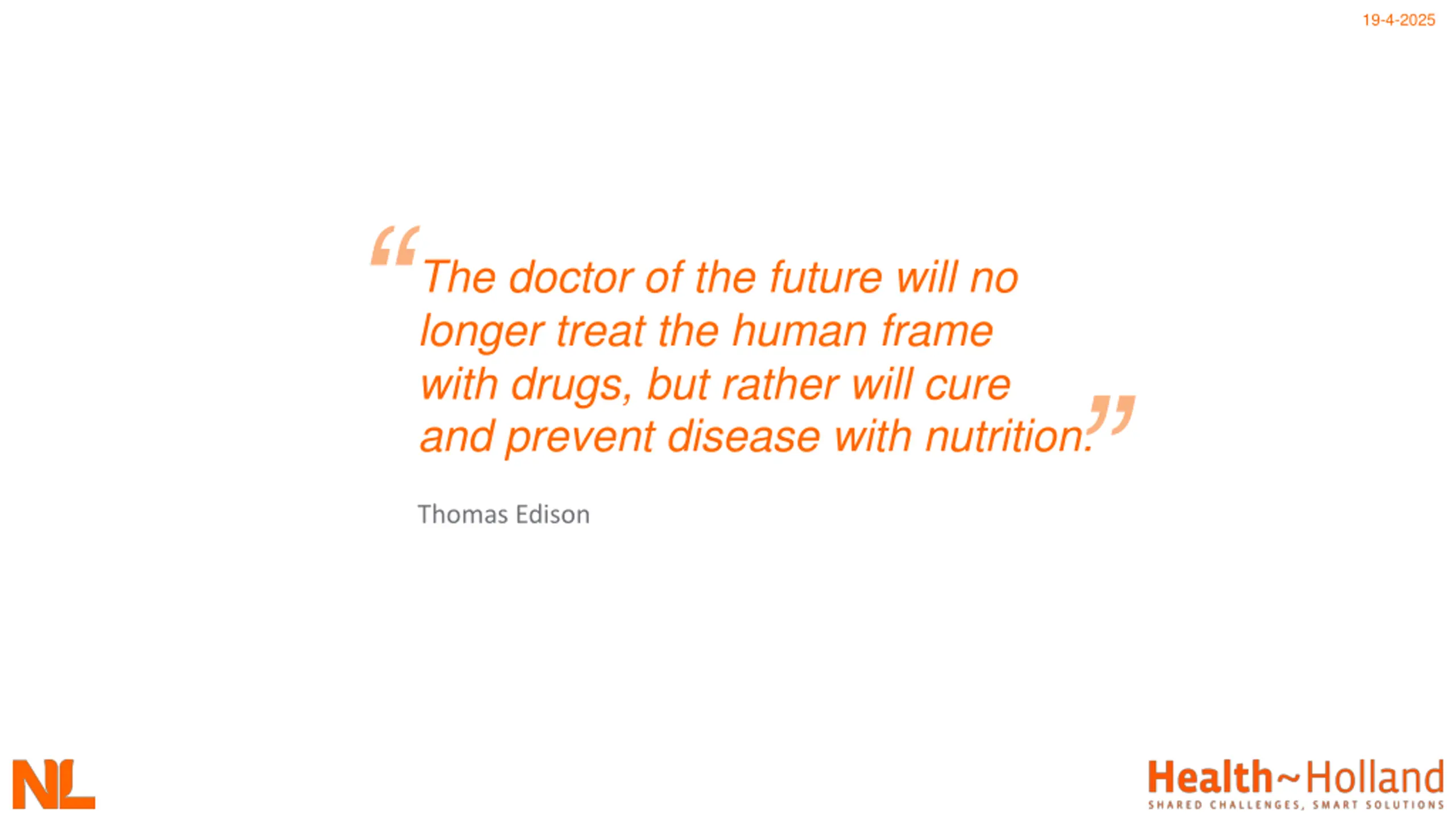 19-4-2025 The doctor of the future will no longer treat the human frame with drugs, but rather will cure and prevent disease with nutrition. Thomas Edison
