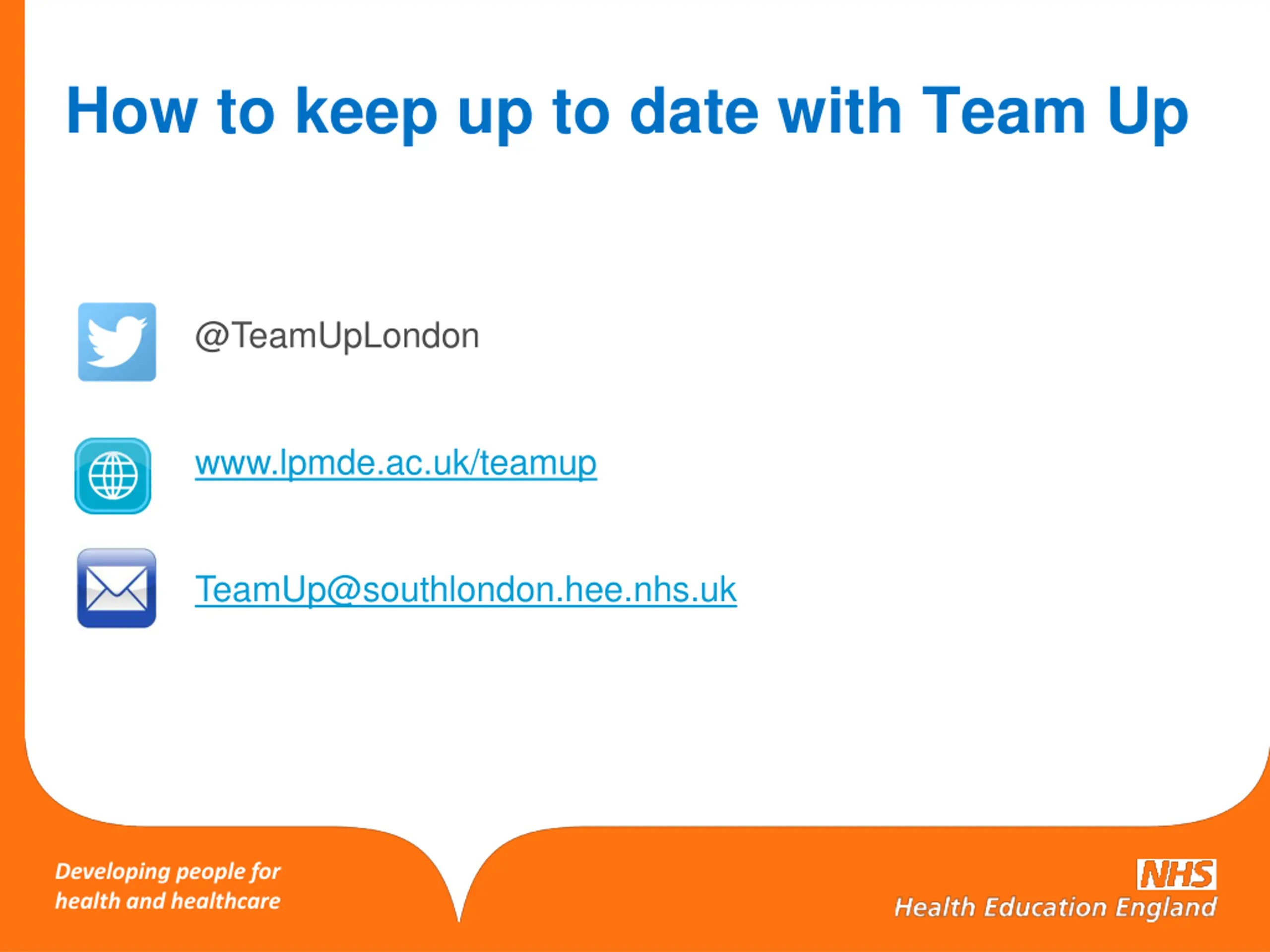 How to keep up to date with Team Up @TeamUpLondon www.lpmde.ac.uk/teamup TeamUp@southlondon.hee.nhs.uk Developing people for health and healthcare