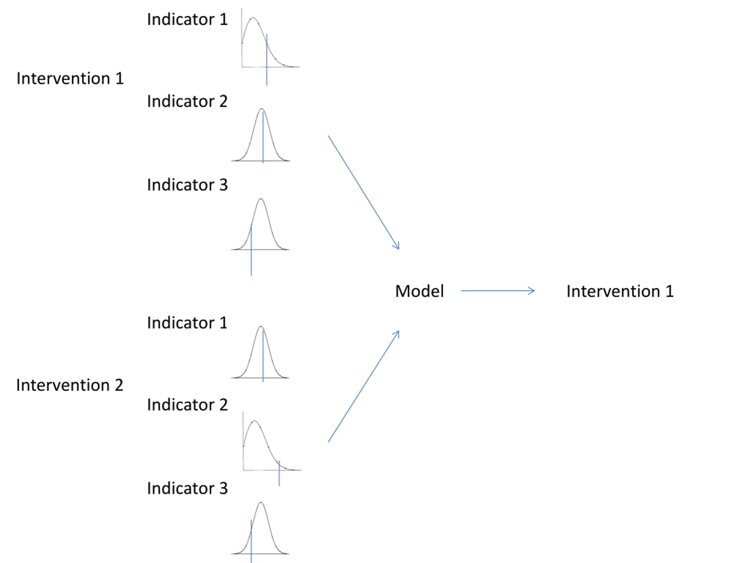 Indicator 1 Intervention 1 Indicator 2 Indicator 3 Model Intervention 1 Indicator 1 Intervention 2 Indicator 2 Indicator 3