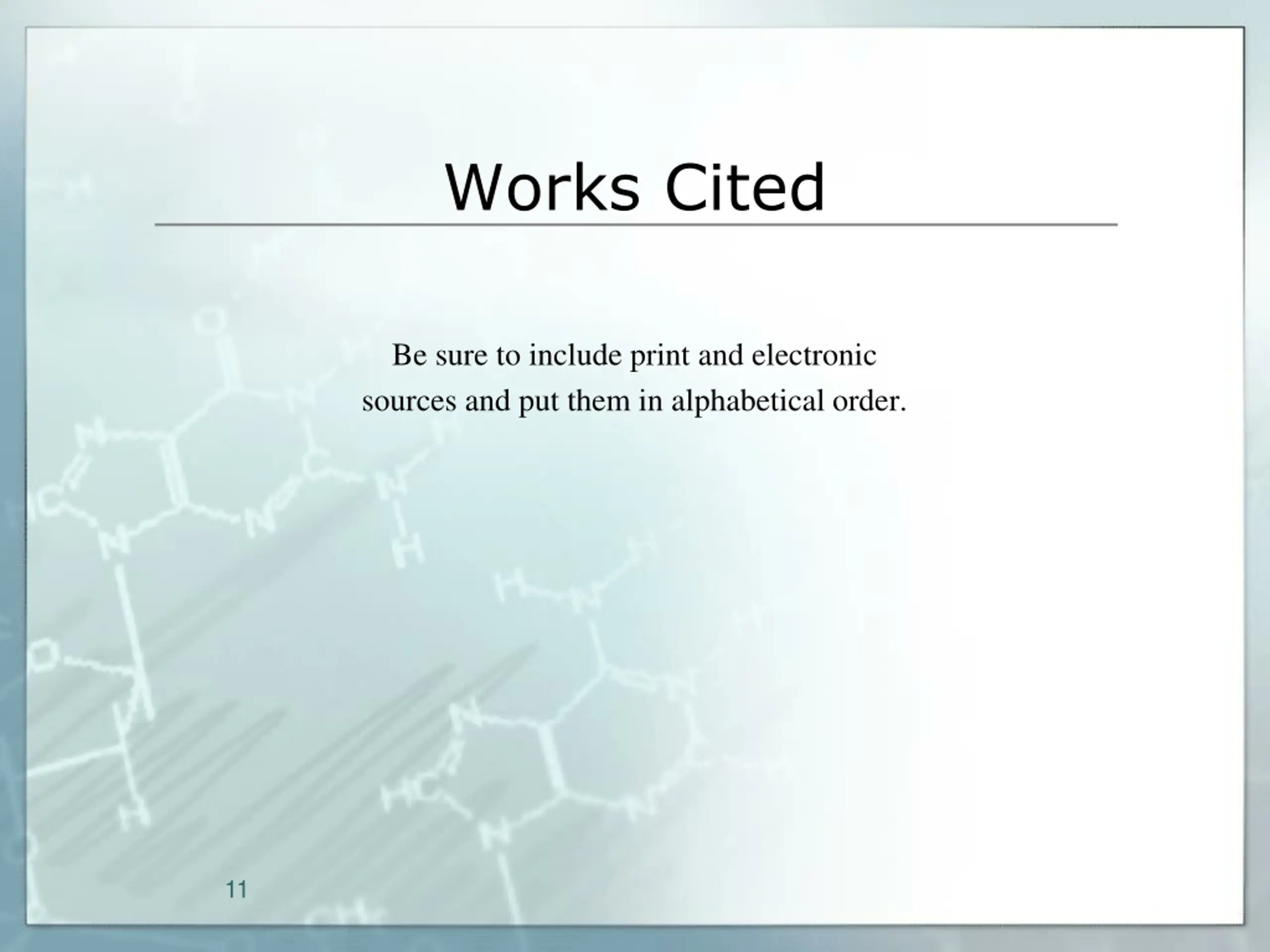 Works Cited Be sure to include print and electronic sources and put them in alphabetical order. 11