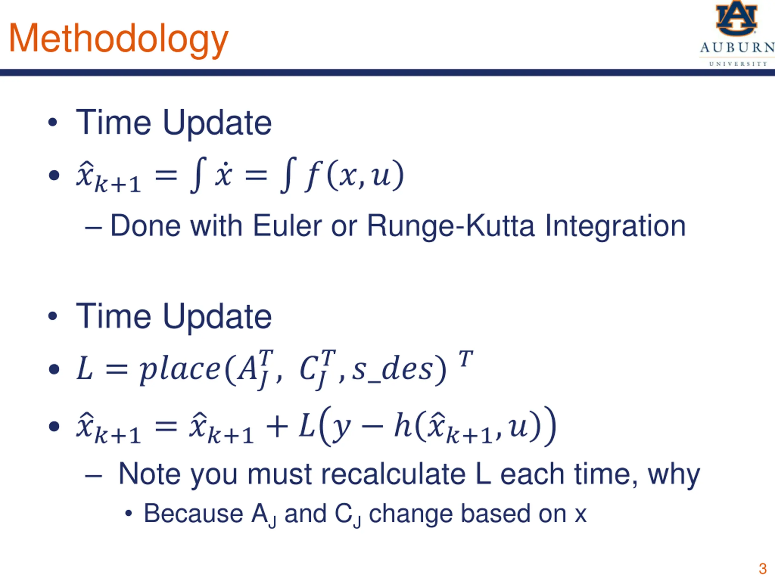 Methodology Time Update ??+1= ? = ? ?,? Done with Euler or Runge-Kutta Integration Time Update ? = ?????(?? ??+1= ??+1+ ? ? ??+1,? Note you must recalculate L each time, why Because AJ and CJ change based on x ?,???,?_???)? 3