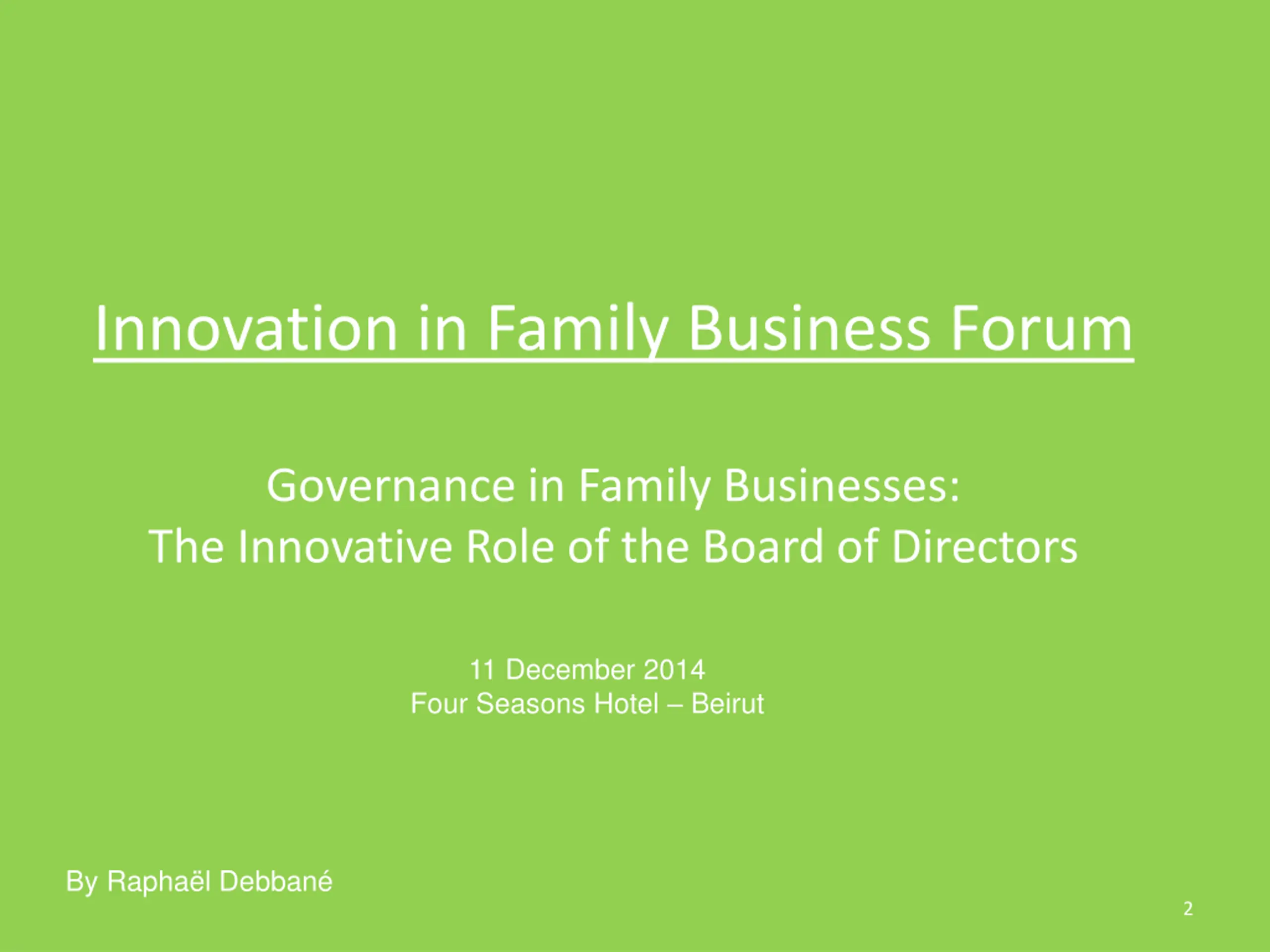 Innovation in Family Business Forum Governance in Family Businesses: The Innovative Role of the Board of Directors 11 December 2014 Four Seasons Hotel Beirut By Rapha l Debban 2