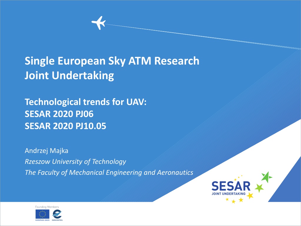 Single European Sky ATM Research Joint Undertaking Technological trends for UAV: SESAR 2020 PJ06 SESAR 2020 PJ10.05 Andrzej Majka Rzeszow University of Technology The Faculty of Mechanical Engineering and Aeronautics 1