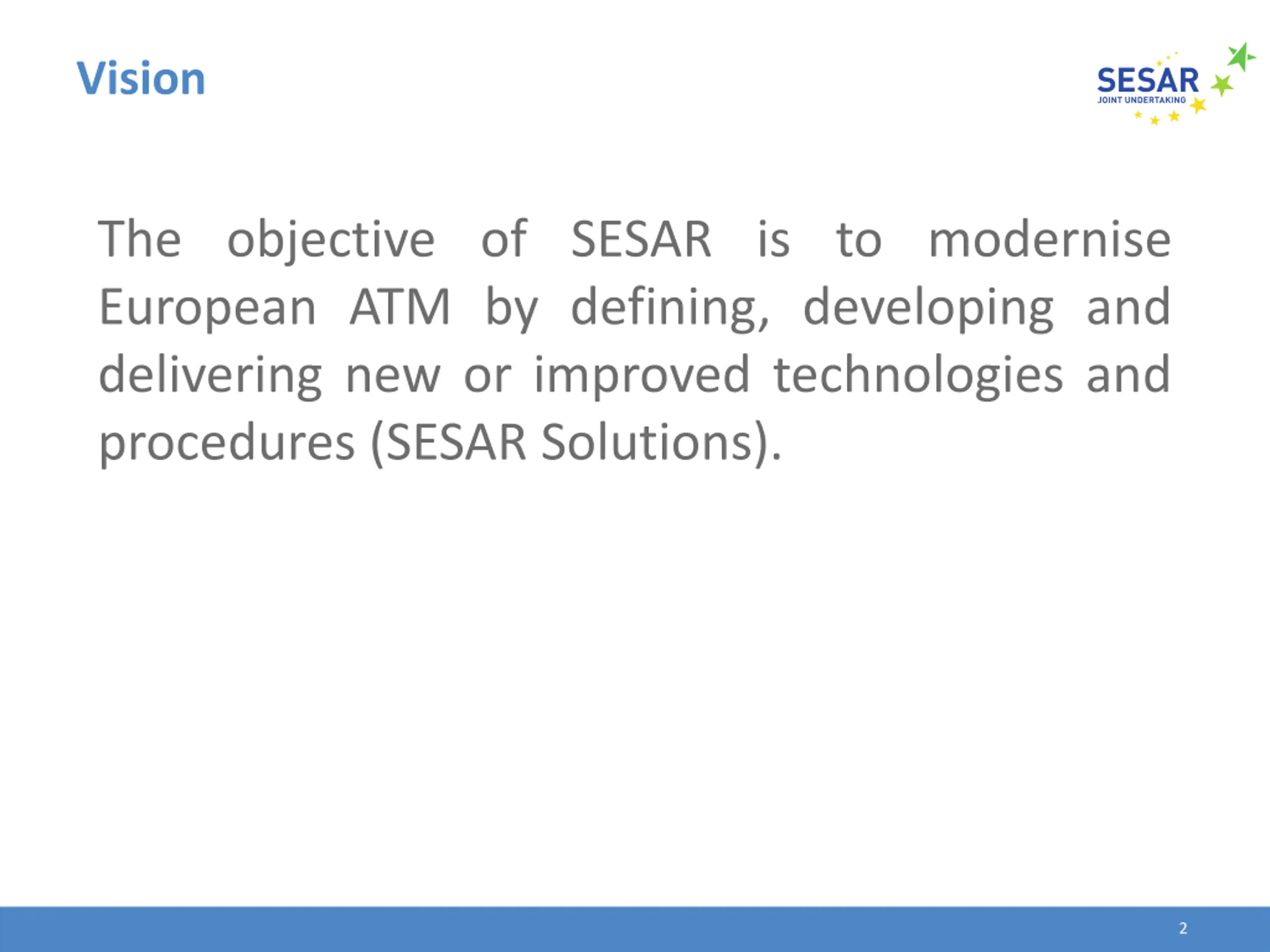 Vision The objective of SESAR is to modernise European ATM by defining, developing and delivering new or improved technologies and procedures (SESAR Solutions). 2