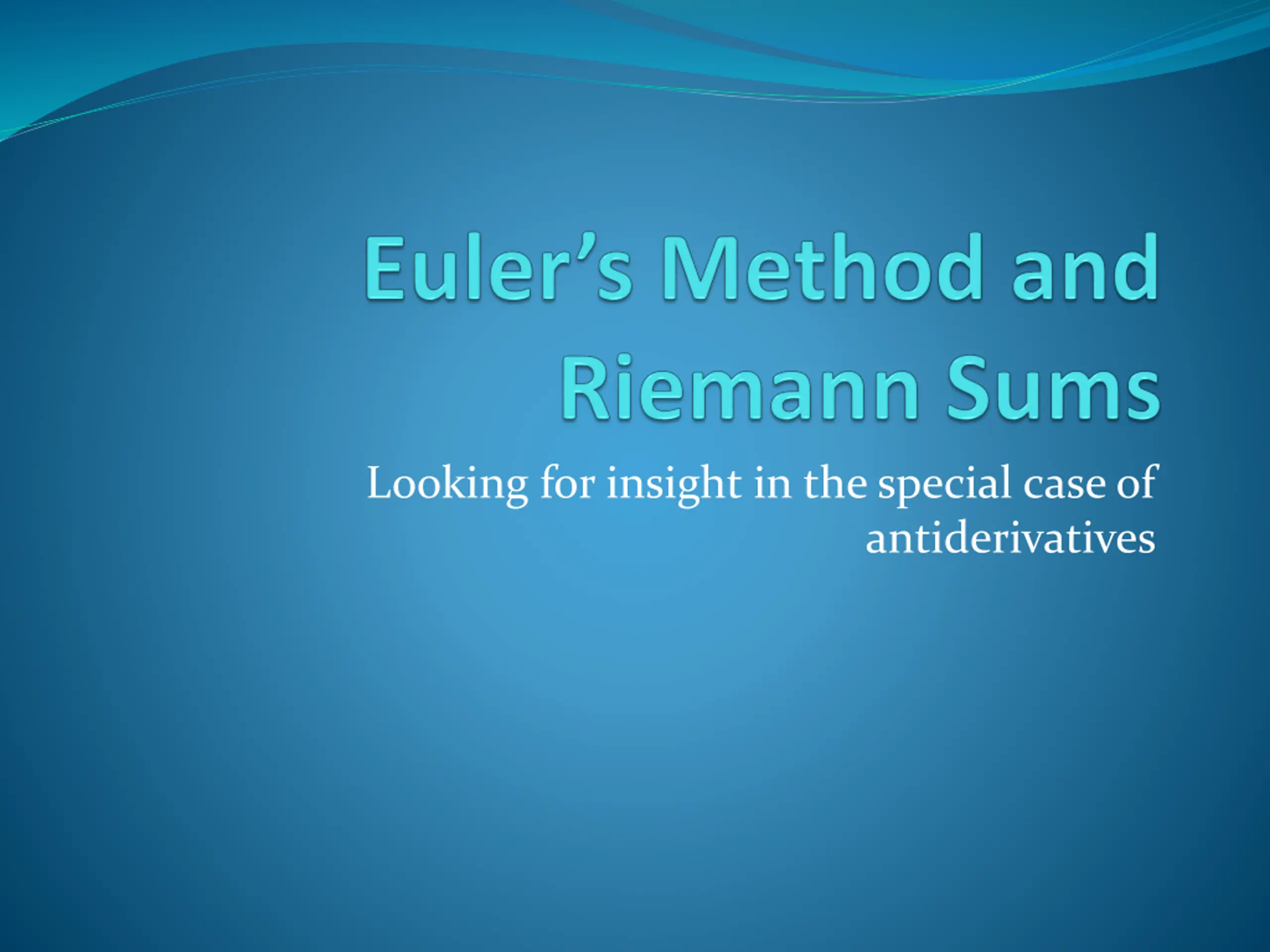 Point of View f f t t ( ) ( ) ( ) = = = Area f t t slope y t f t t dy dt= ( ) g t When our differential equation is of the form Euler s method is a generalization of the left end-point Riemann sum!