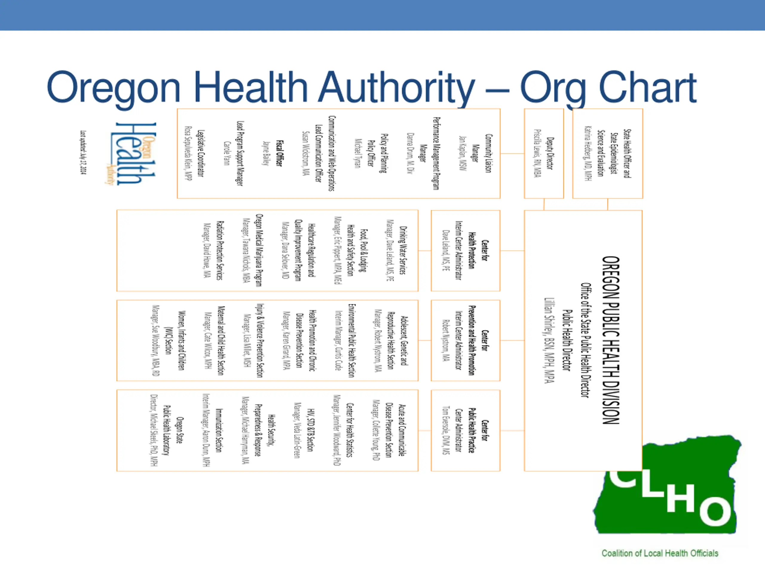 PUBLIC HEALTH IN OREGON Presentation by Morgan D. Cowling, CLHO Executive Director Muriel DeLaVergne-Brown, CLHO Chair September 17th, 2014