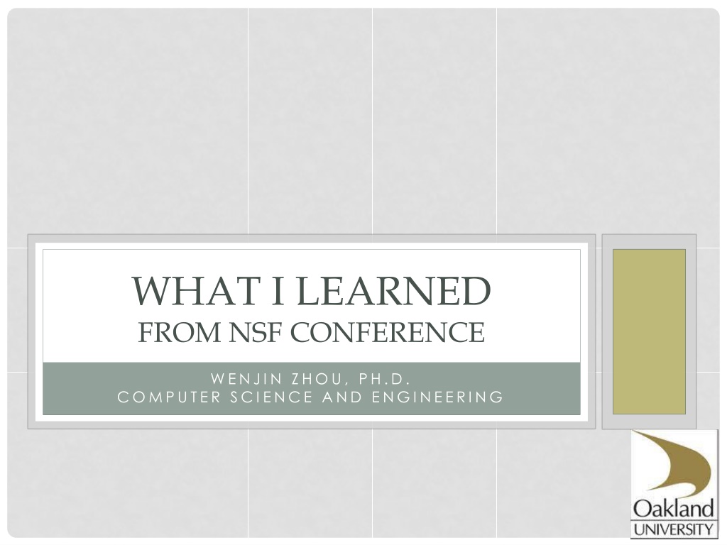WHAT I LEARNED FROM NSF CONFERENCE WENJI N ZHO U , PH.D. C O M PU TER SC I ENC E A ND ENGI NEERI NG