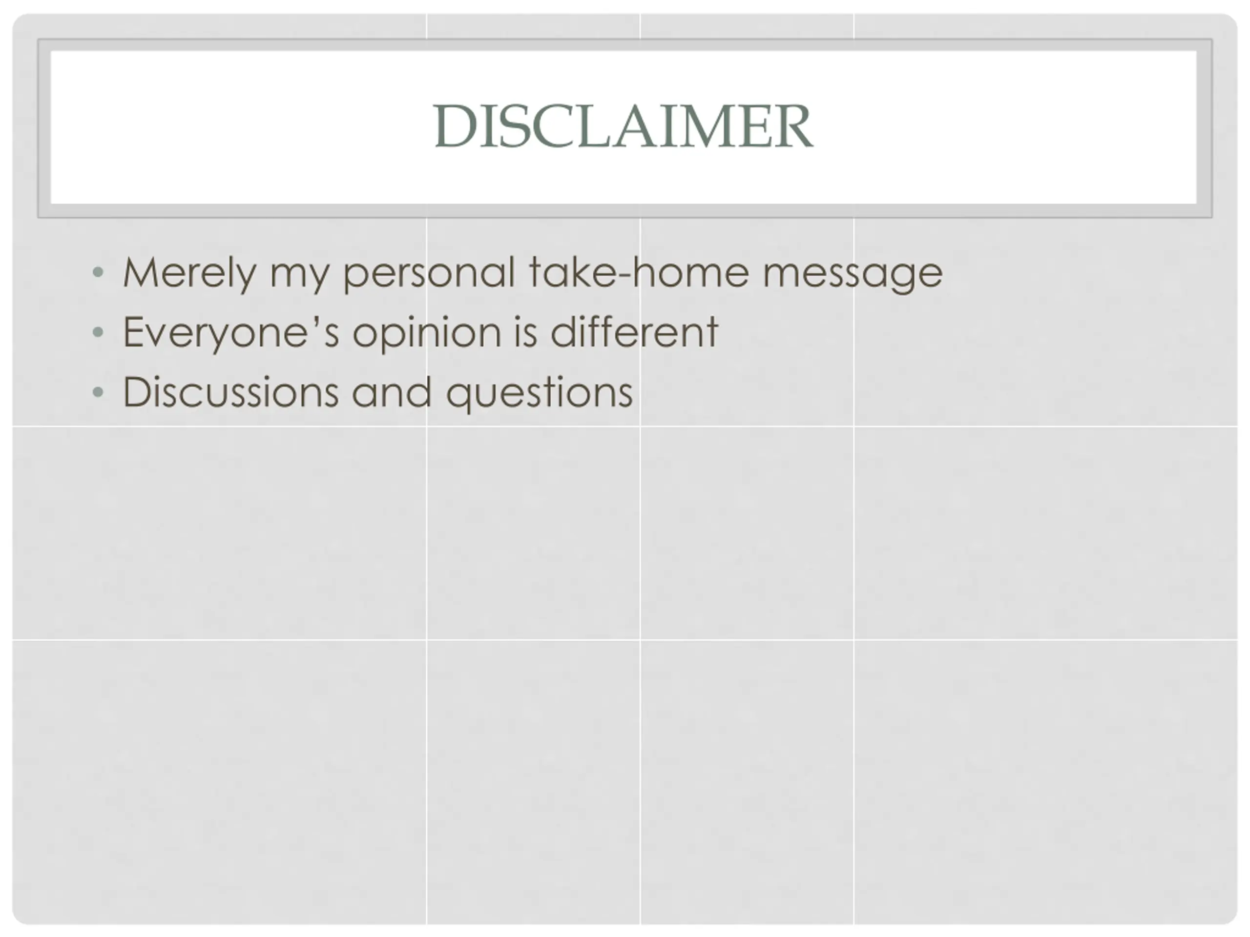 DISCLAIMER Merely my personal take-home message Everyone s opinion is different Discussions and questions