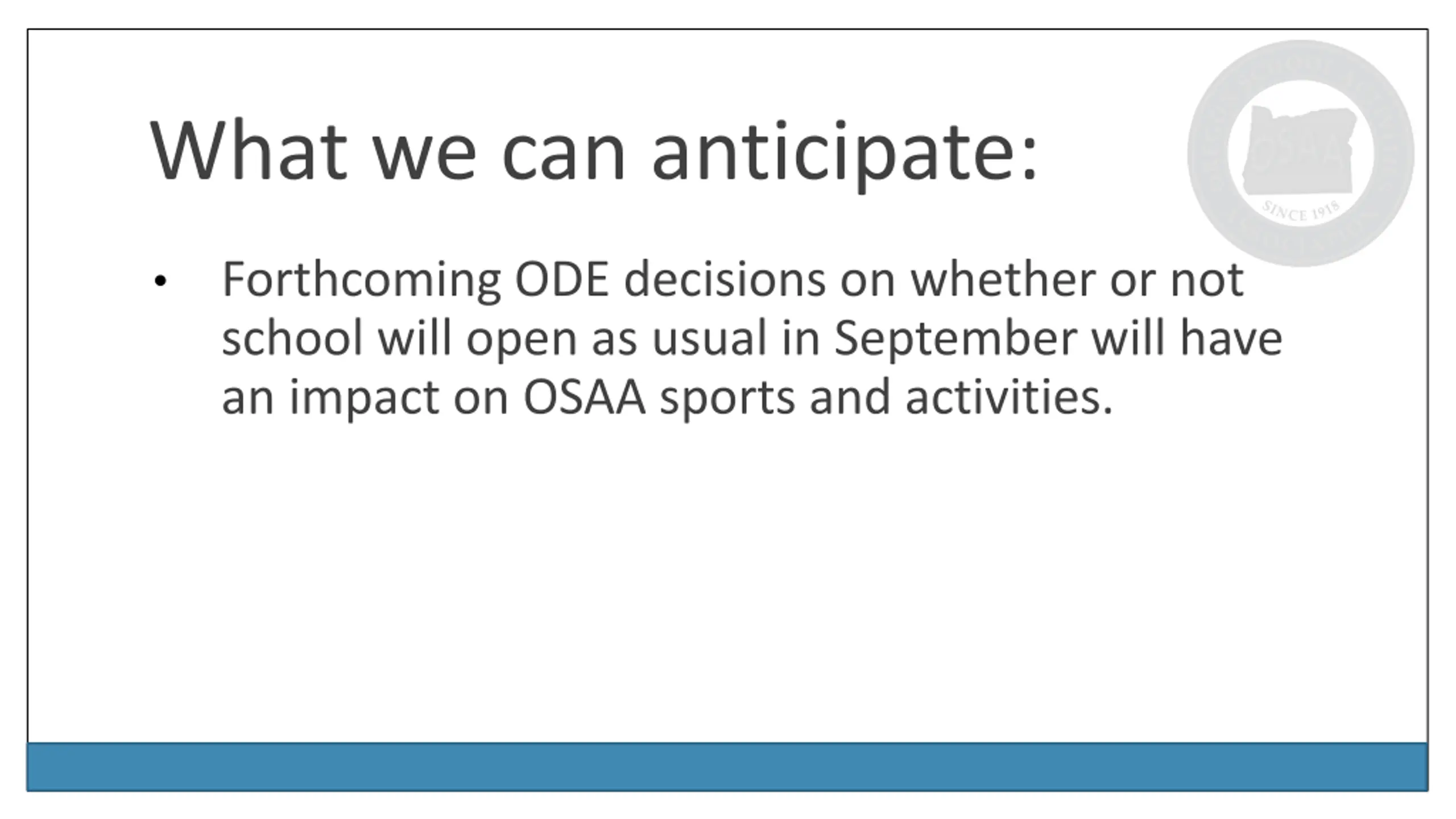 What we can anticipate: Forthcoming ODE decisions on whether or not school will open as usual in September will have an impact on OSAA sports and activities.