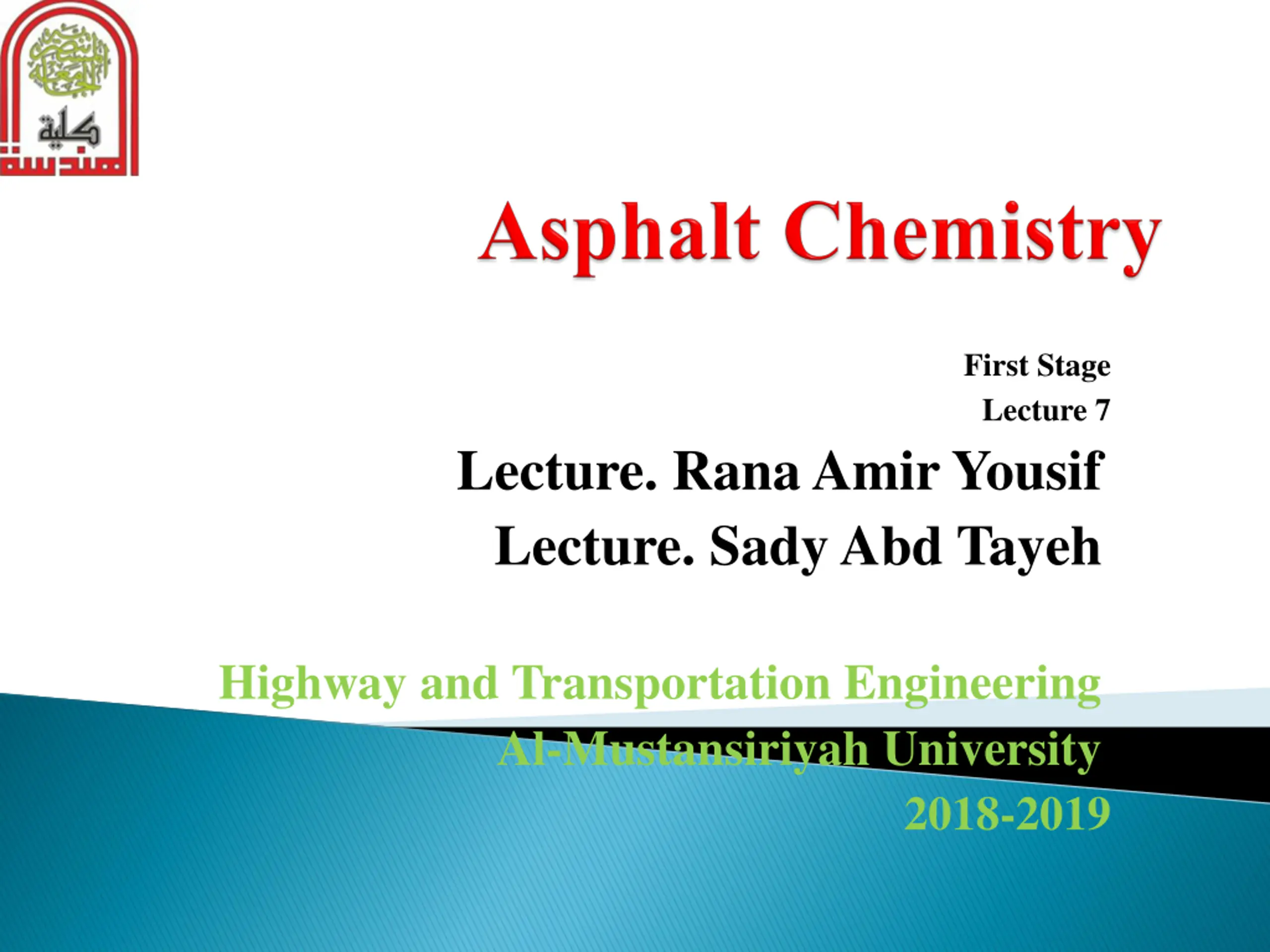- First Stage Lecture 7 Lecture. Rana Amir Yousif Lecture. SadyAbd Tayeh Highway and Transportation Engineering Al-Mustansiriyah University 2018-2019
